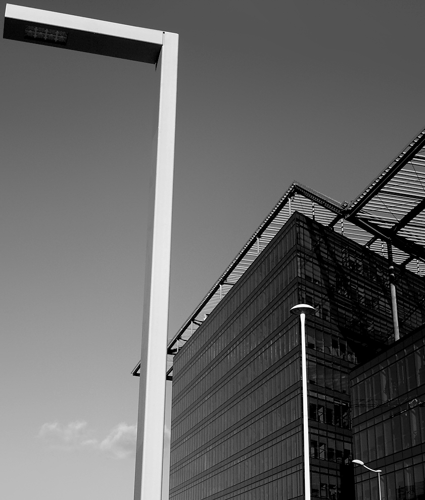spostandoti un pochino indietro avresti garantito la separazione dei due elementi principali mantenendo l'incrocio sull'angolo in alto a sx. Inoltre, se allinei le linee verticali del palazzo con quelle del lampione ne risulta maggiore ordine. Però carina l'idea di incorniciare naturalmente il cielo in contrapposizione con l'altra metà del frame dove c'è il palazzo Ciao