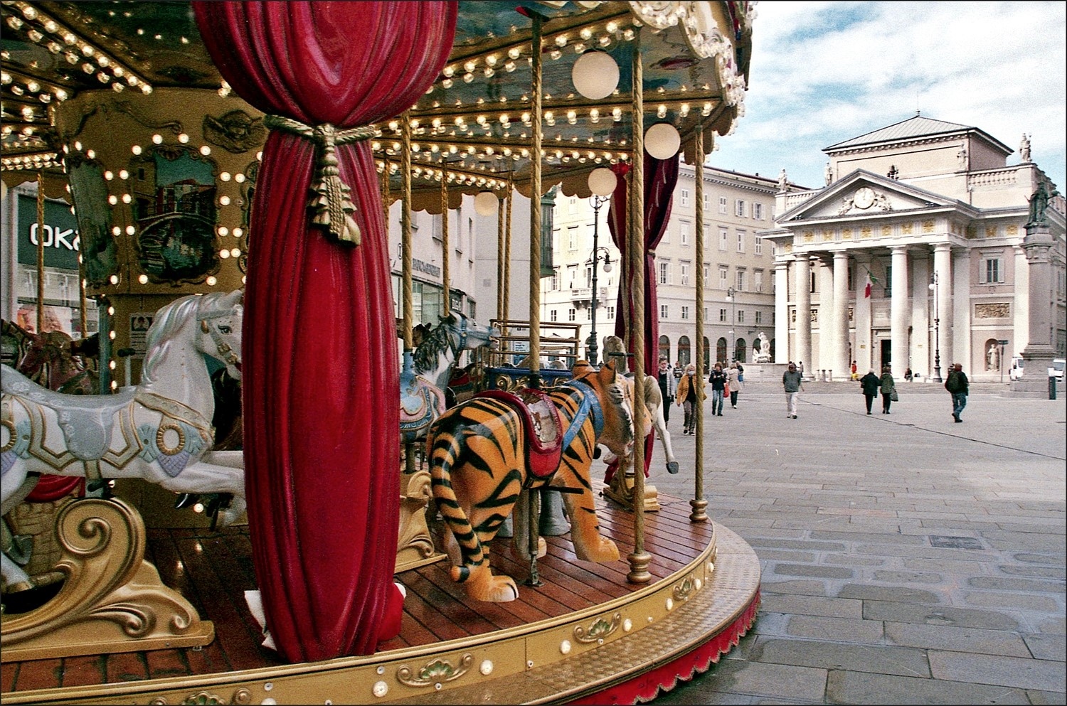 Sono sempre affascinanti queste giostrine vintage, che accostano molto bene con la classicità della piazza, trovo bellissimi i colori e la composizione, complimenti!