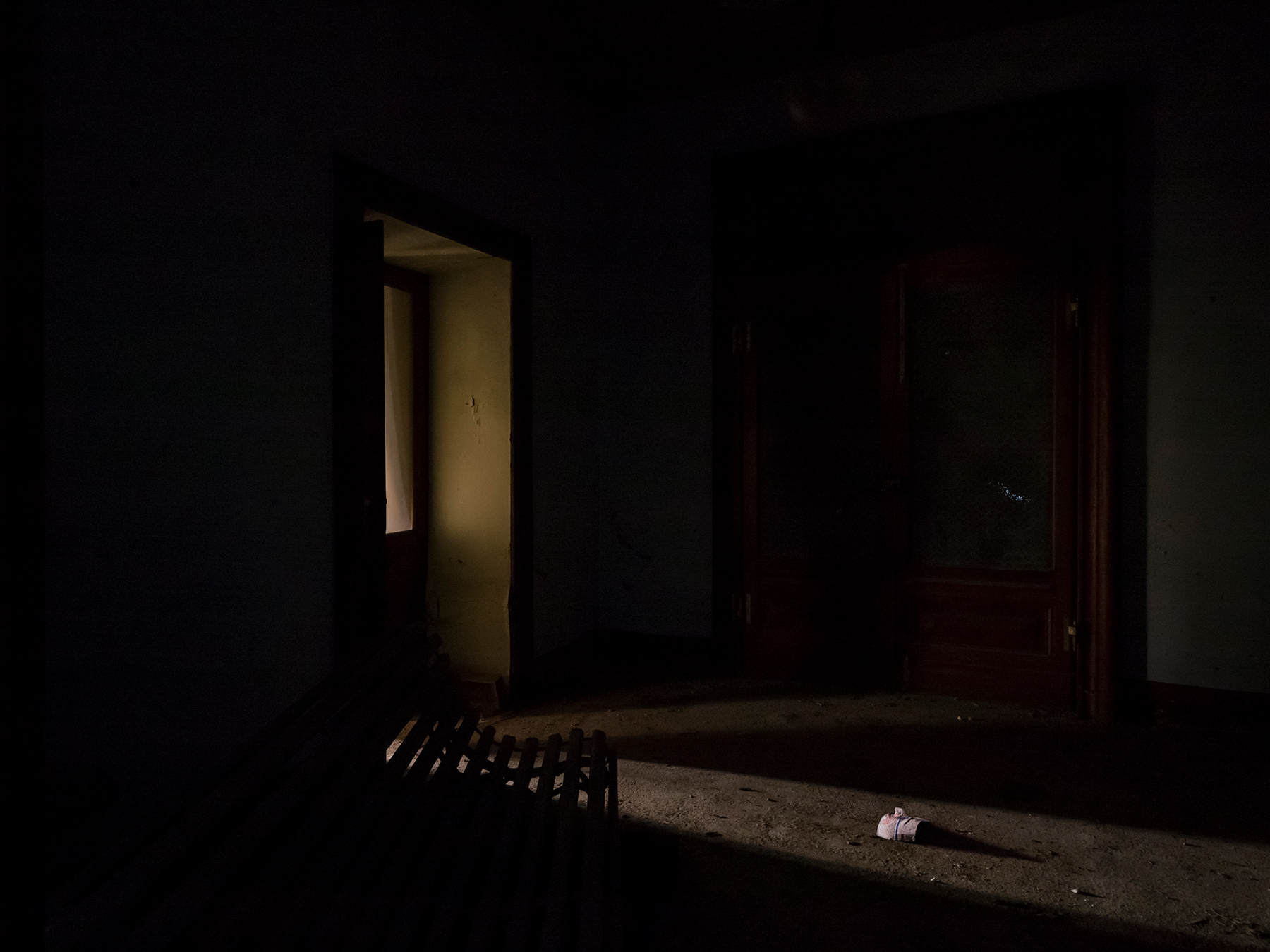 Come una sensazione.. sulla porta degli strani occhietti luminosi ci stiano osservando.. piacevoli anche linee di luce sul pavimento.