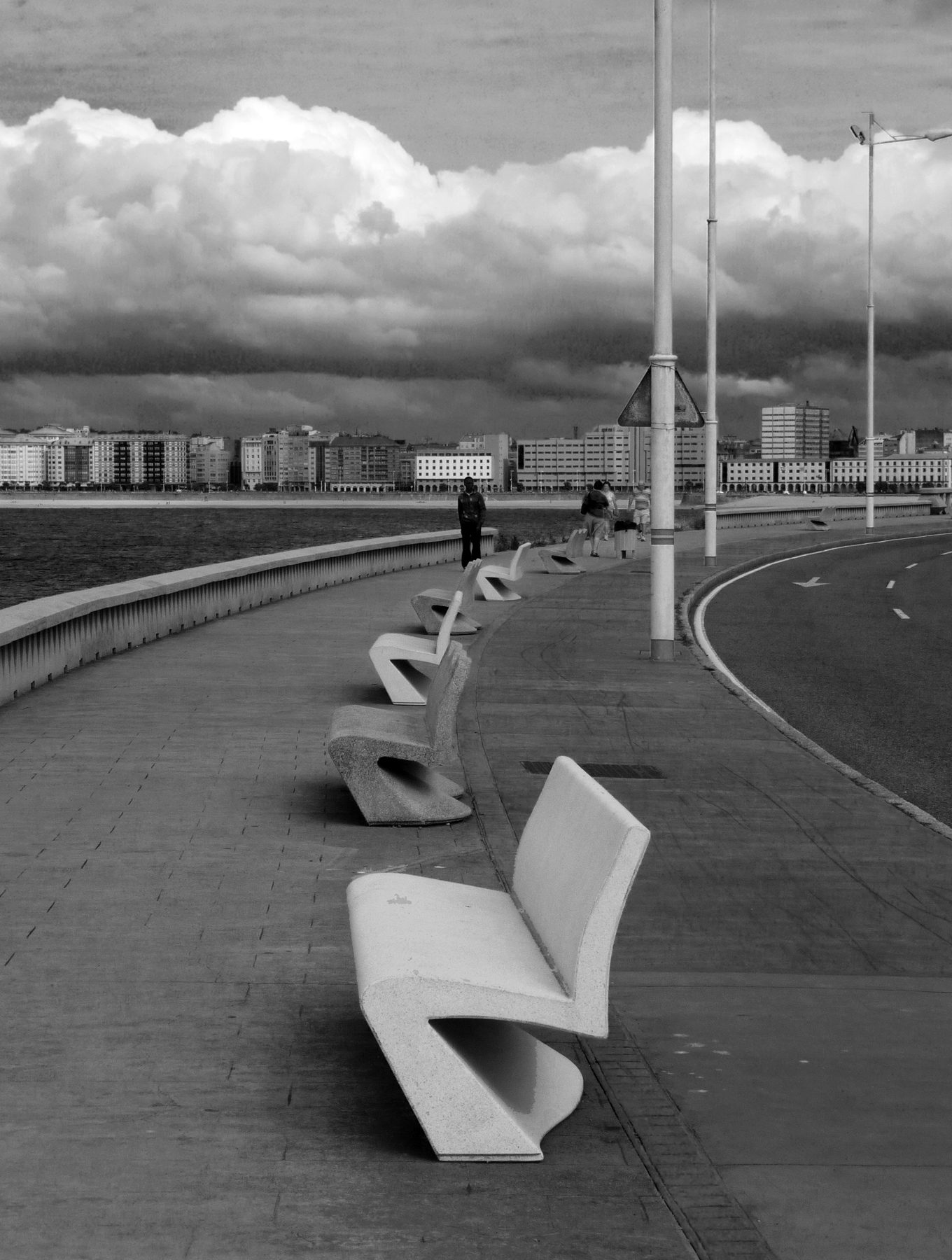 Non mi convince troppo la parte alta del cielo e capisco che il tuo occhio sia stato attratto da quel fenomeno ma siccome, come scrivi, il soggetto sono le panchine, quello tende a distrarre.
