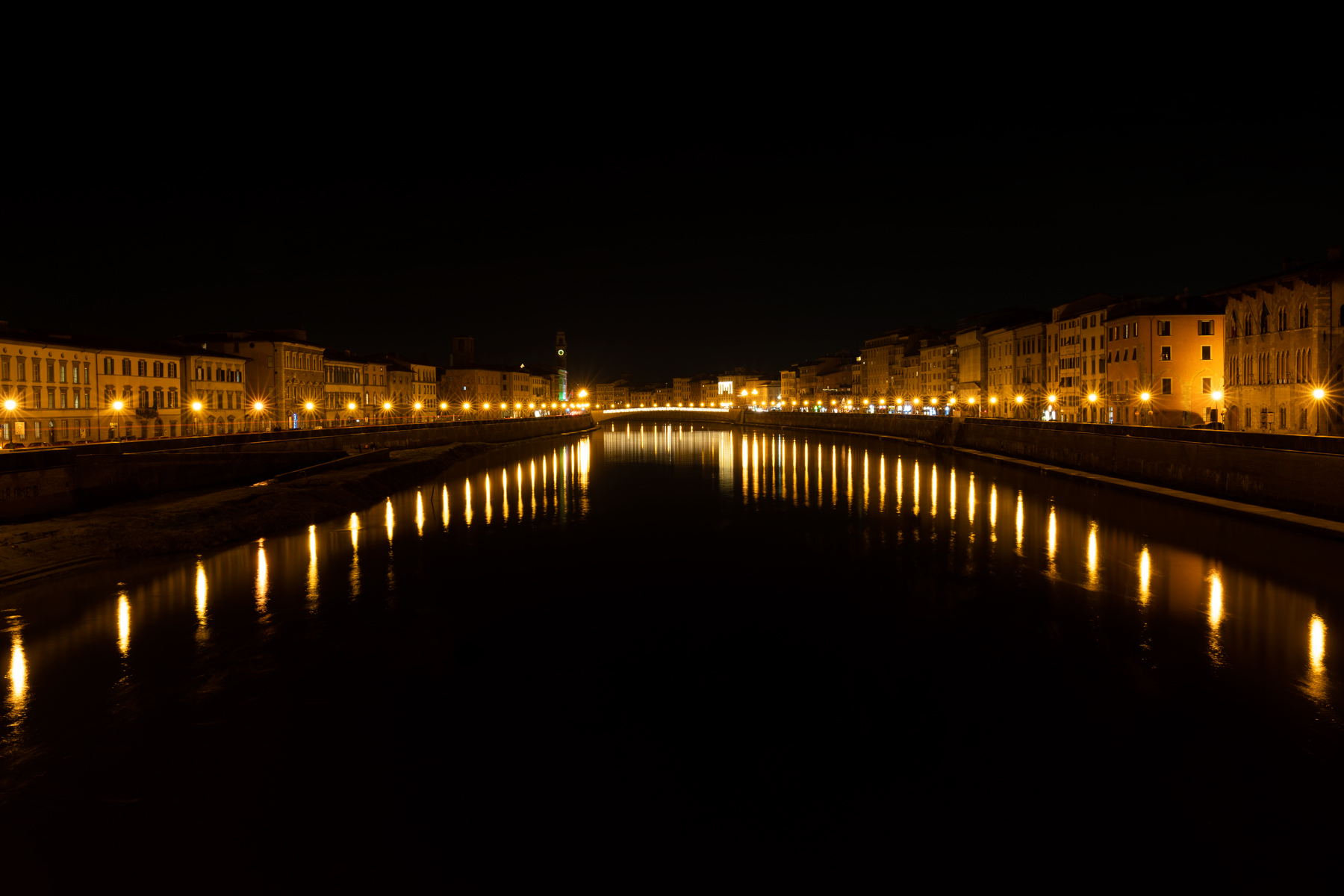 A me piace molto questo contrasto deciso tra il nero del fiume e del cielo e il giallo delle luci e trovo ottimo il pdr che rende quasi simmetriche le due rive. Anche io ho però l’impressione che penda leggermente a sinistra.