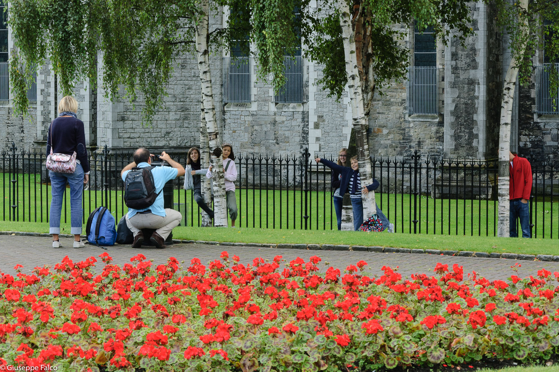 Simpatico quadretto con tutti i ragazzi in posa dietro gli alberi, anche se sembra che l’uomo stia riprendendo solo i primi… Bella composizione, con buona nitidezza e vivacità di colori