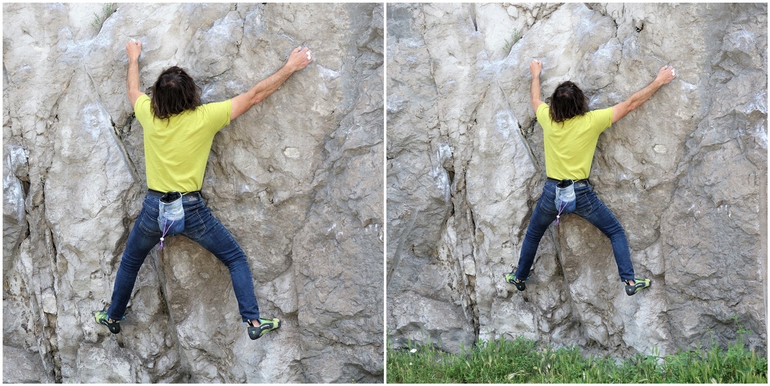 Una doppia immagine ma vista con due distanze diverse.. dove nella prima si percepisce di più lo sforzo dello scalatore. Un ottimo Dittico.