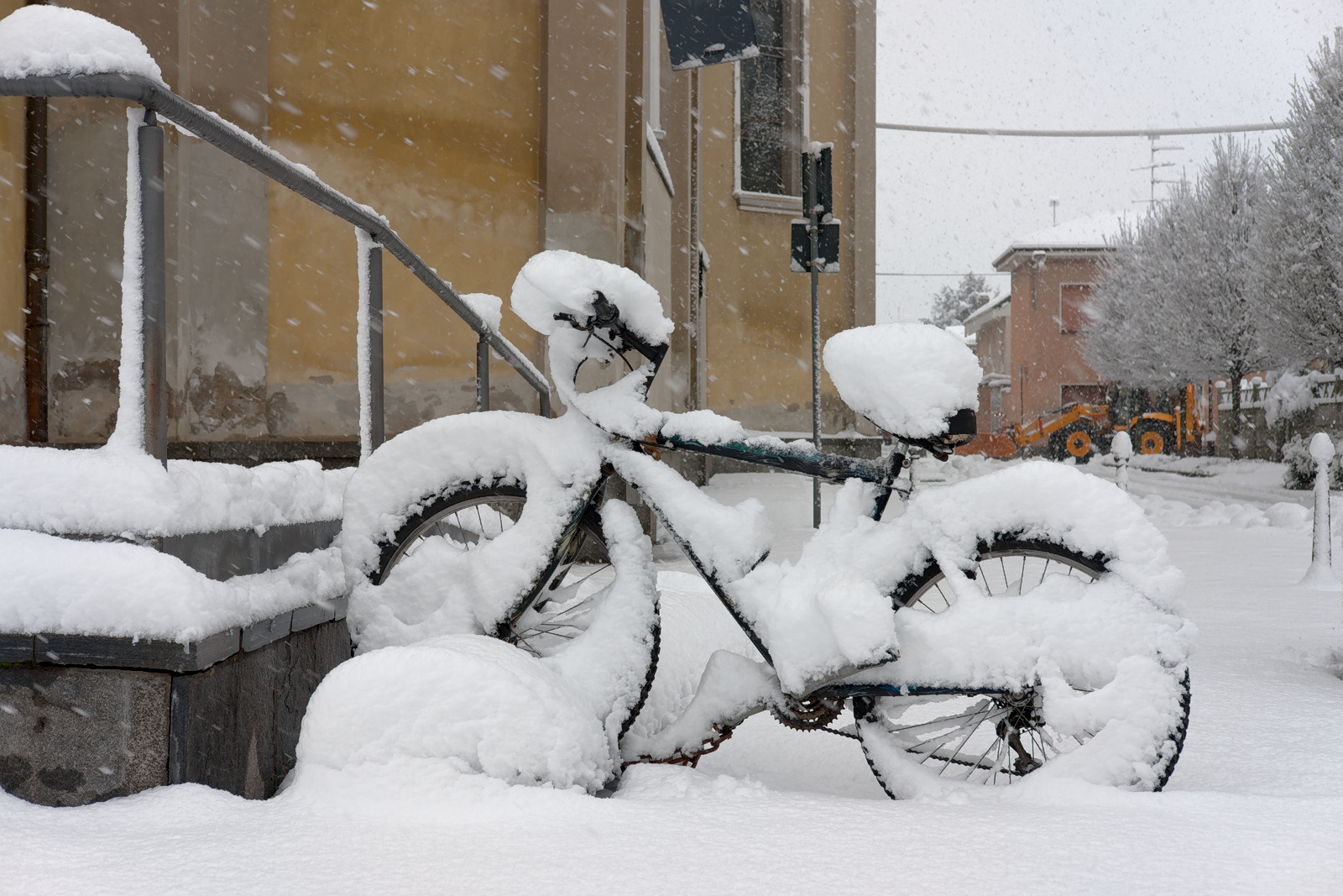 | La bici che aspetta lo spazzaneve? Buona proposta, perfetta nella gestione cromatica. |