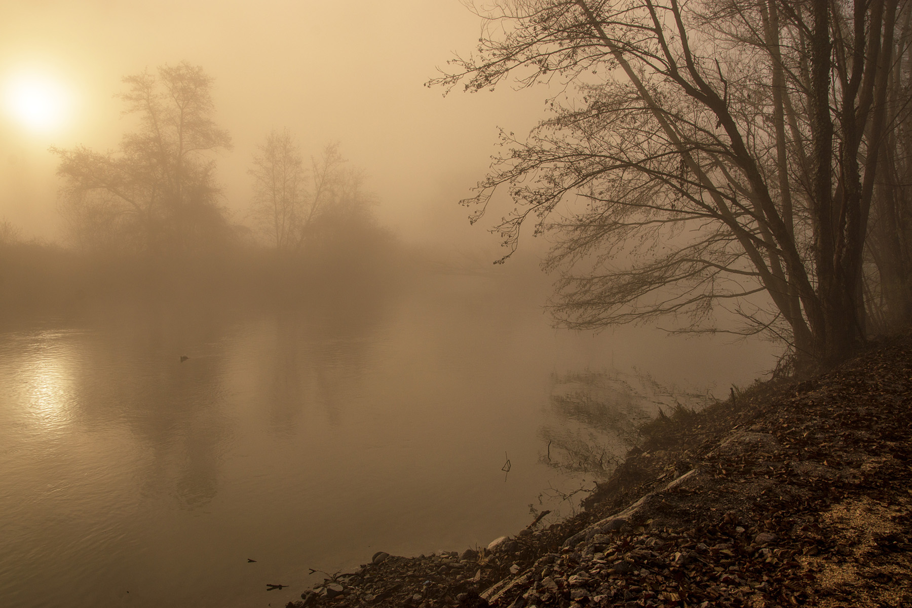 Probabilmente funziona la proposta di Francesco. Detto questo, trovo questa immagine molto piacevole per l'atmosfera e le cromie, c'è davvero una sorta di dialogo tra le sponde, mi piace moltissimo
