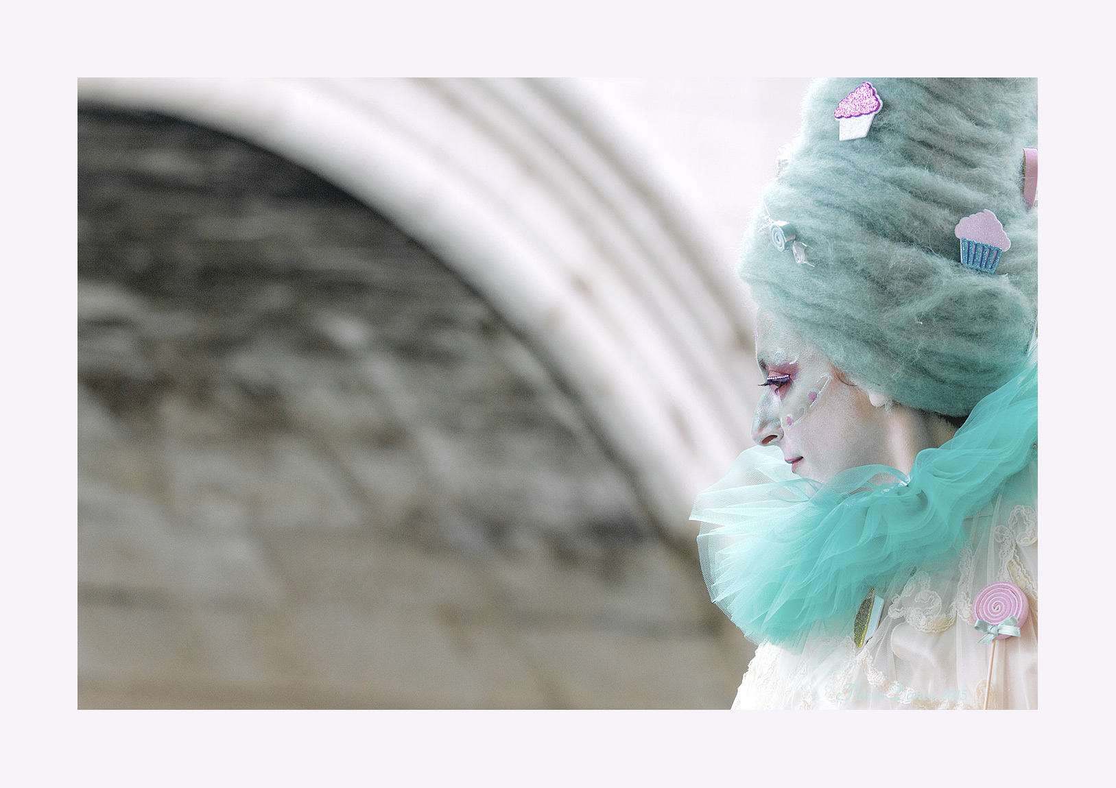 Una nuvola colorata incrocio tra zucchero filante ed un grande mashmellow . Mi piace molto come hai scelto di decentrare lasciando tanto spazio a Venezia che ‘sfocata’ da sempre tutto osserva e tutto (Tanto!) sopporta . Sempre interessante il tuo sguardo diverso sul Carnevale ...ciao Flavia un caro saluto