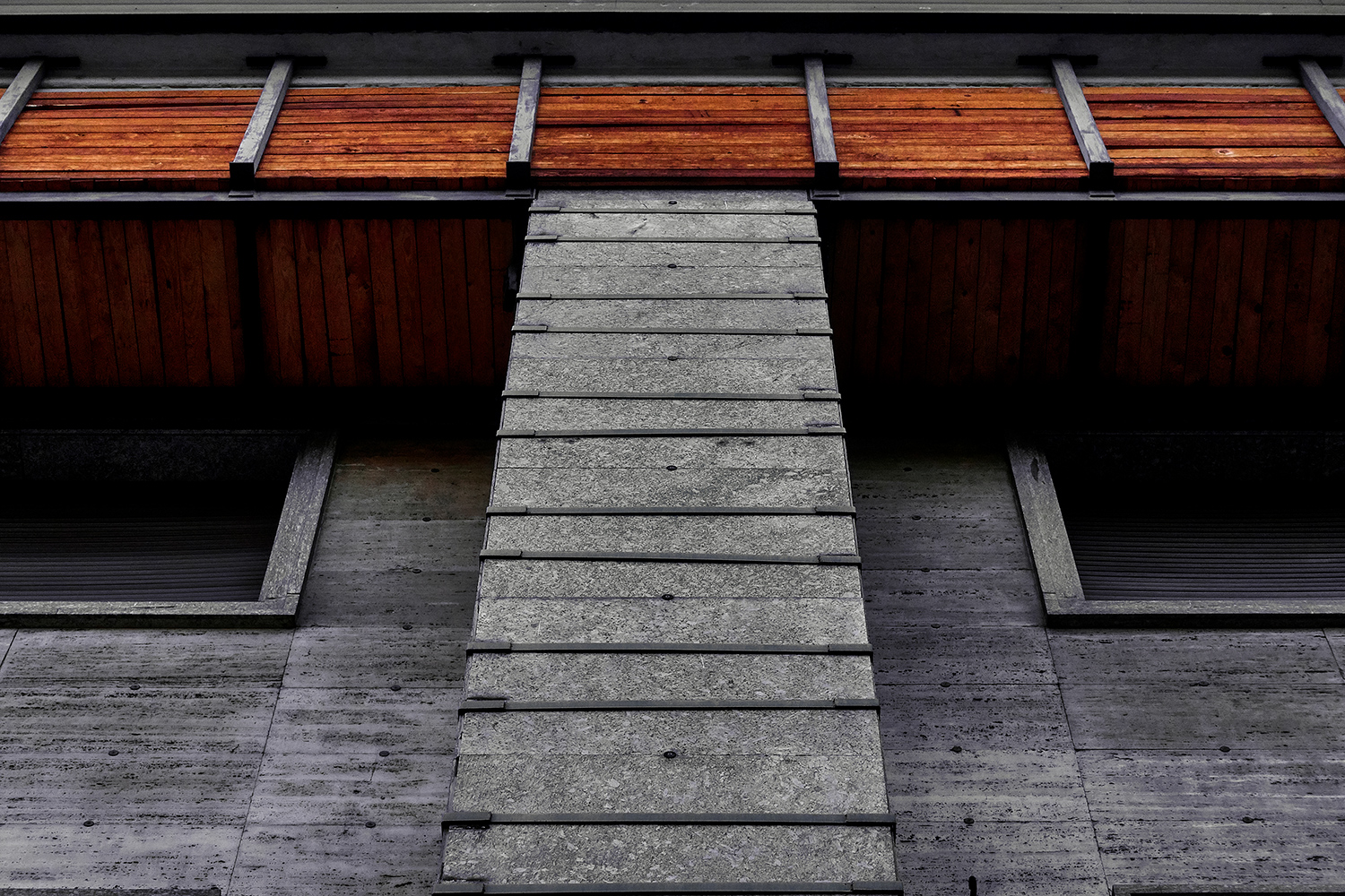 tutto perfettamente confezionato, il legno illumina il grigio cemento  |