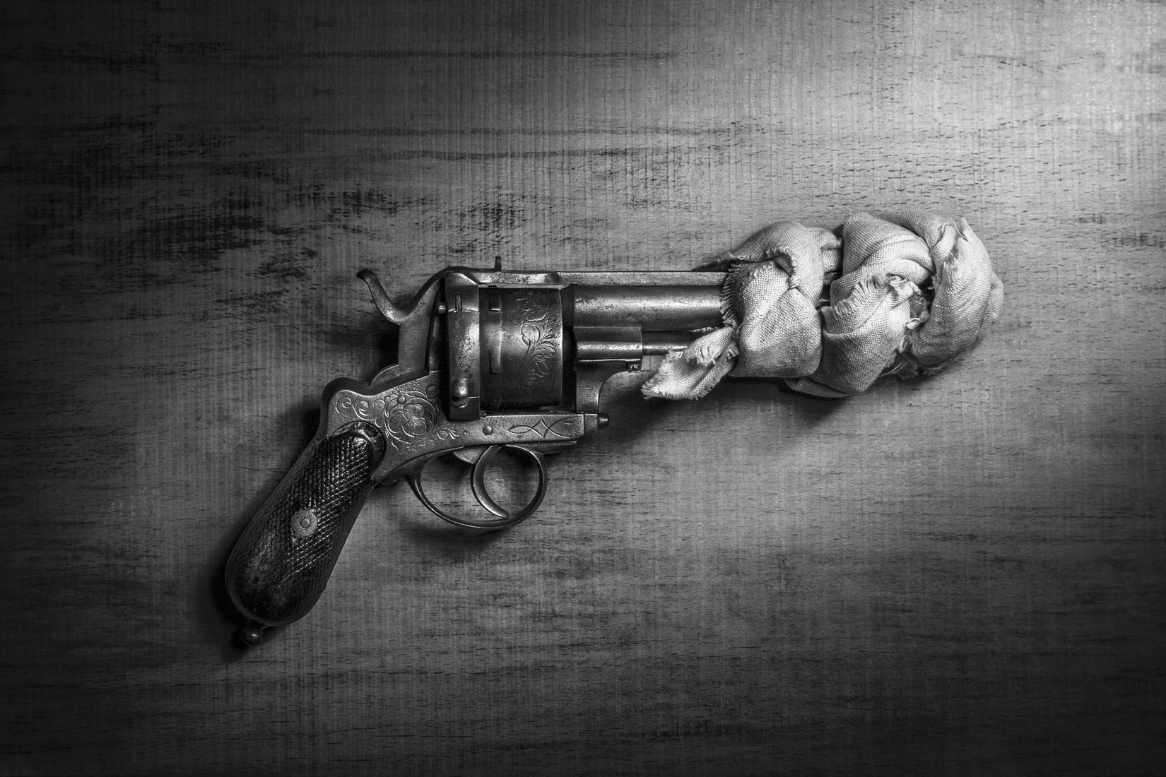 Bravissimo! Il messaggio arriva chiaro e preciso. Ottima la resa della texture del panno e della pistola. Perfetto b/n! Complimenti