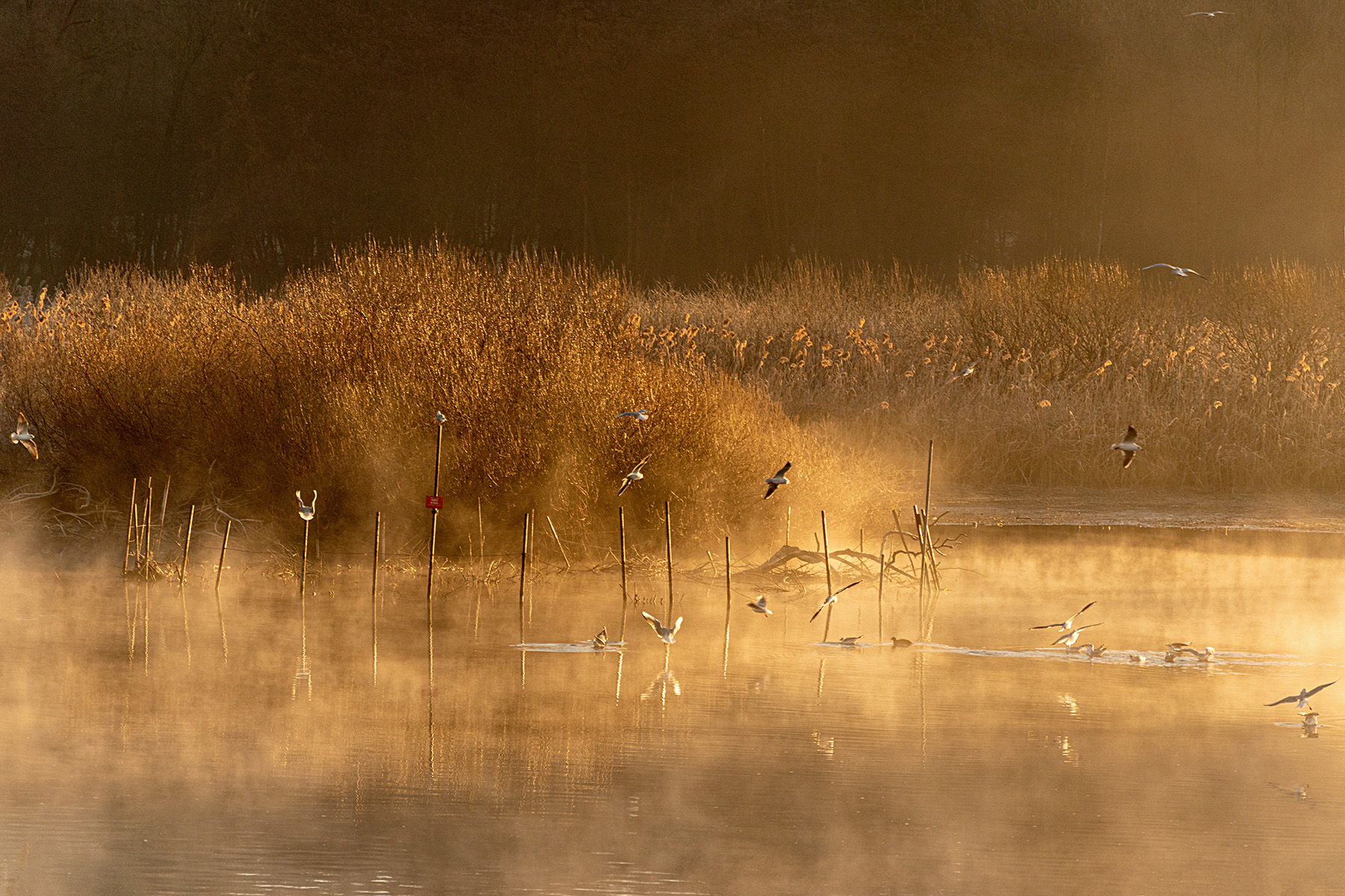 | Una danza il volo dei gabbiani sospesi nella luce dorata. Uno scatto di pregio, preferita