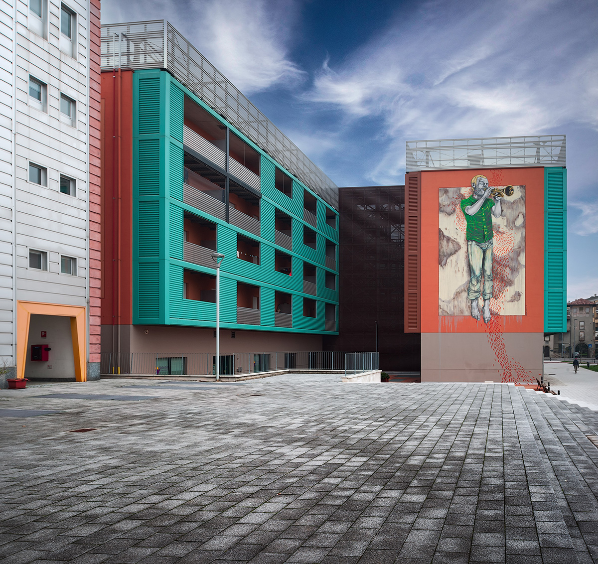 Colori molto belli, buona luce e bellissimo cielo… La scelta del taglio è soggettiva, io avrei mantenuto il formato quadrato ma eliminando del tutto l’edificio bianco a sx e parte del terreno.
