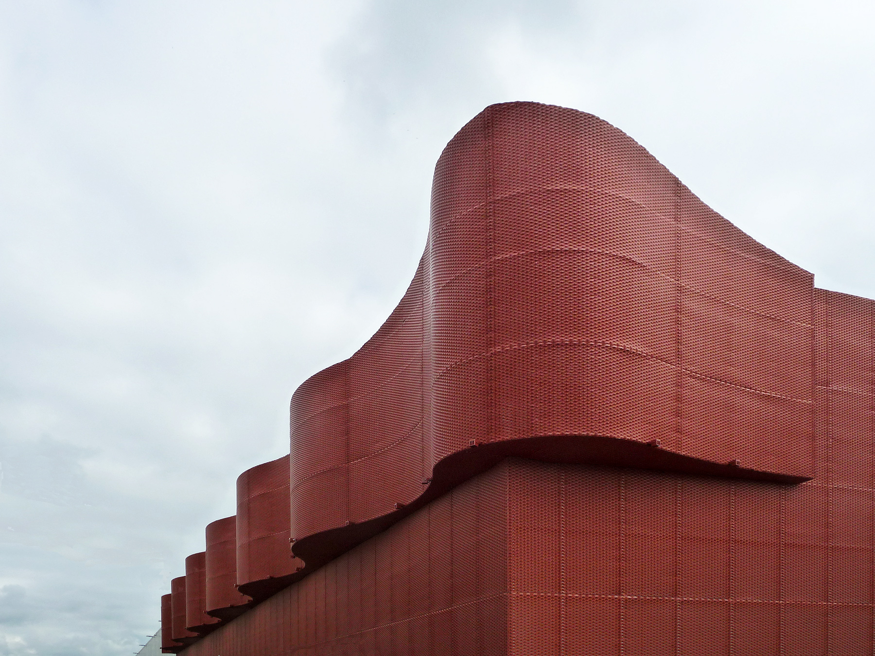 Una sinuosa danza di curve in un bel rosso sotto un cielo lievemente azzurrino.