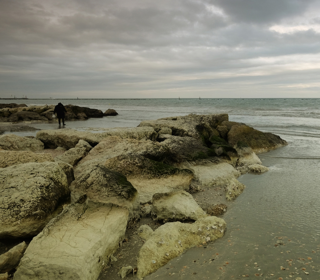 Il grosso scoglio in primo piano ruba tutta la scena agli altri elementi che sarebbero invece interessanti, dal paesaggio all'uomo sulla spiaggia.