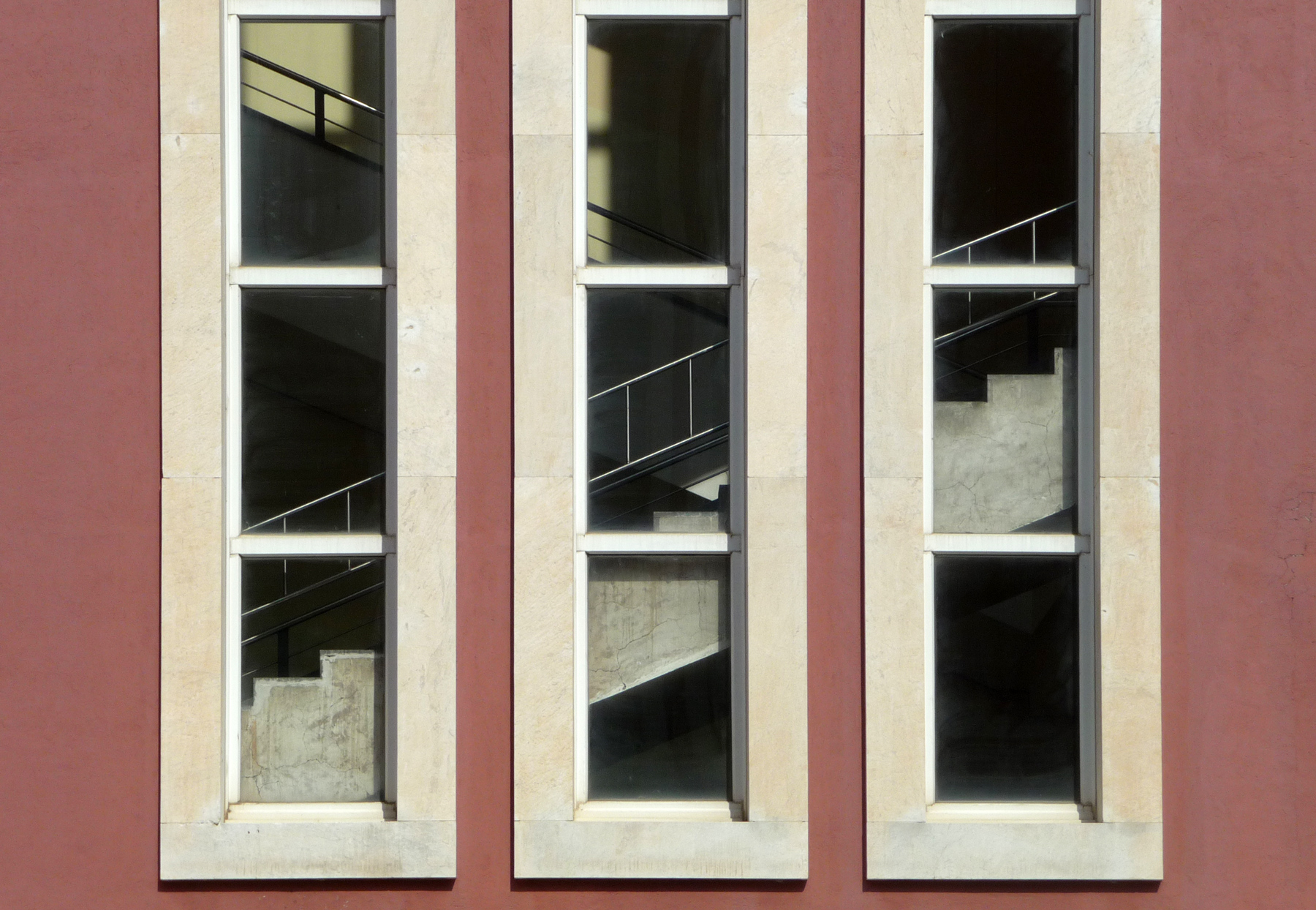 Bellissimo questo trittico finestrato stretto che fa intravedere un saliscendi di scale in una penombra dalle sfumature in chiaroscuro con tinte bellissime.