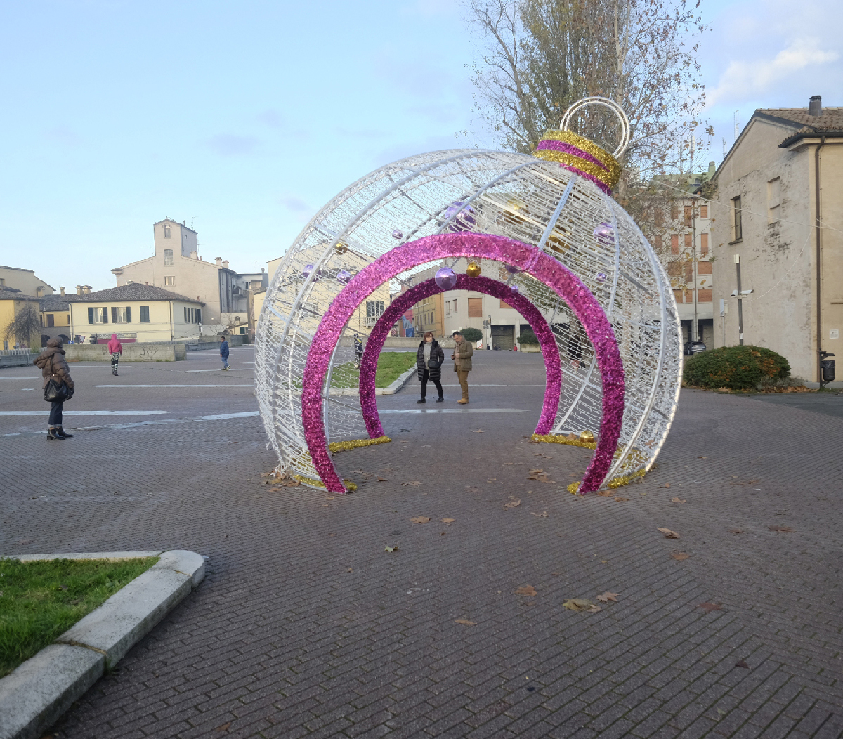 Curiosa installazione natalizia, simpatico l'aver inglobato i due passanti al centro della struttura