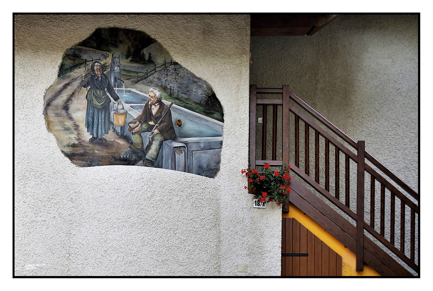 la bella composizione enfatizza l'interessante murales, bella!  |