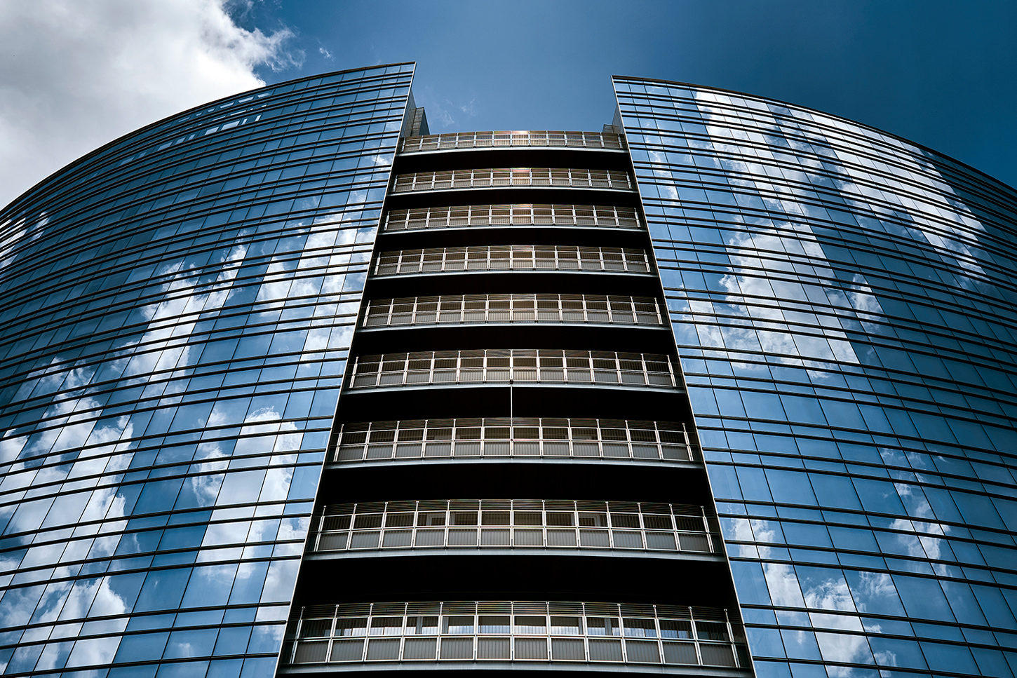 Molto interessante anche questa altra ripresa dal basso. Con questa viene di molto esaltata l'imponenza della struttura. ottimo il riflesso del cielo sulle vetrate. Mi piace. un saluto guido
