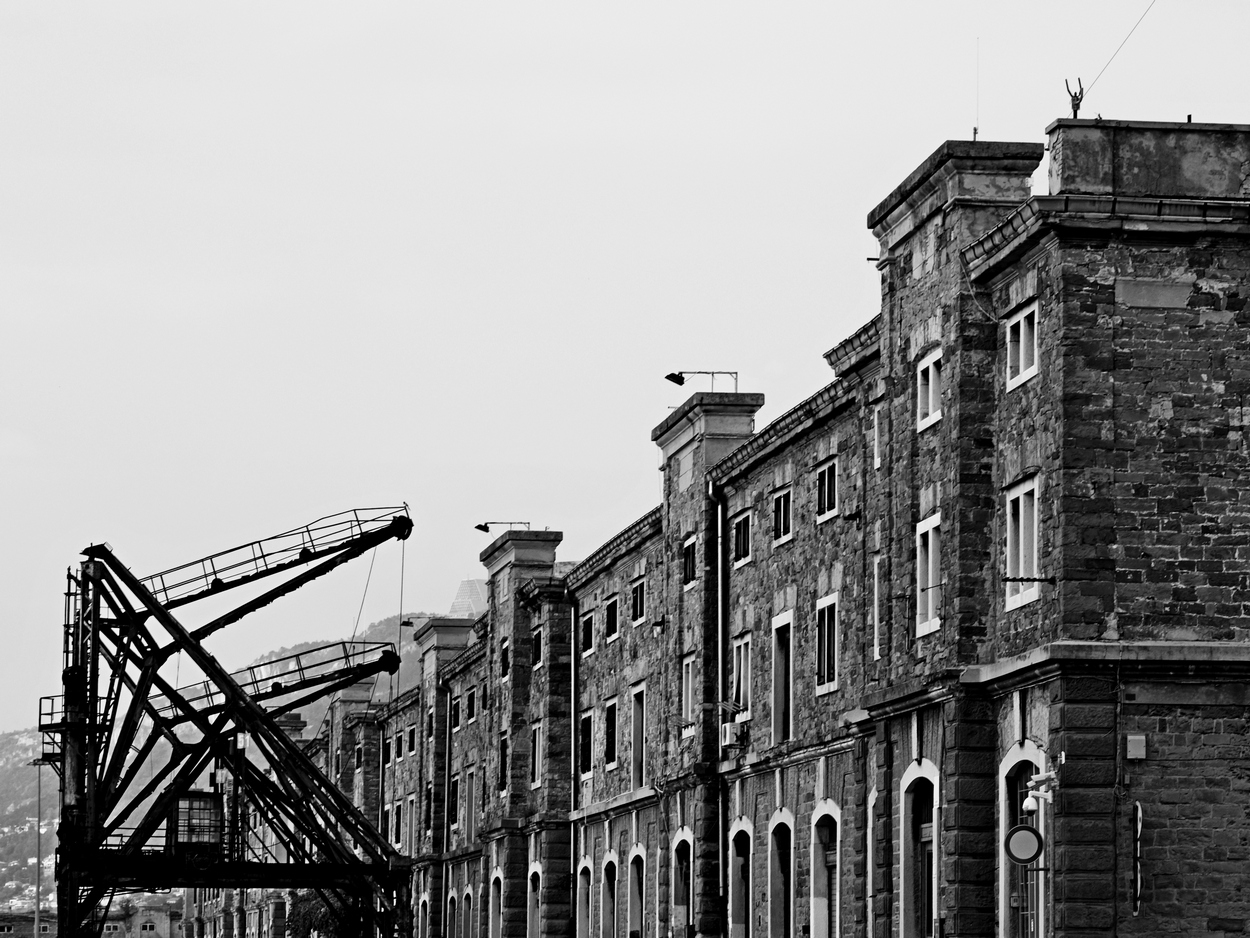 Bellissima Trieste, affascinante il suo porto vecchio; le nostrane ''mancine'' qui in una diversa interpretazione strutturale.