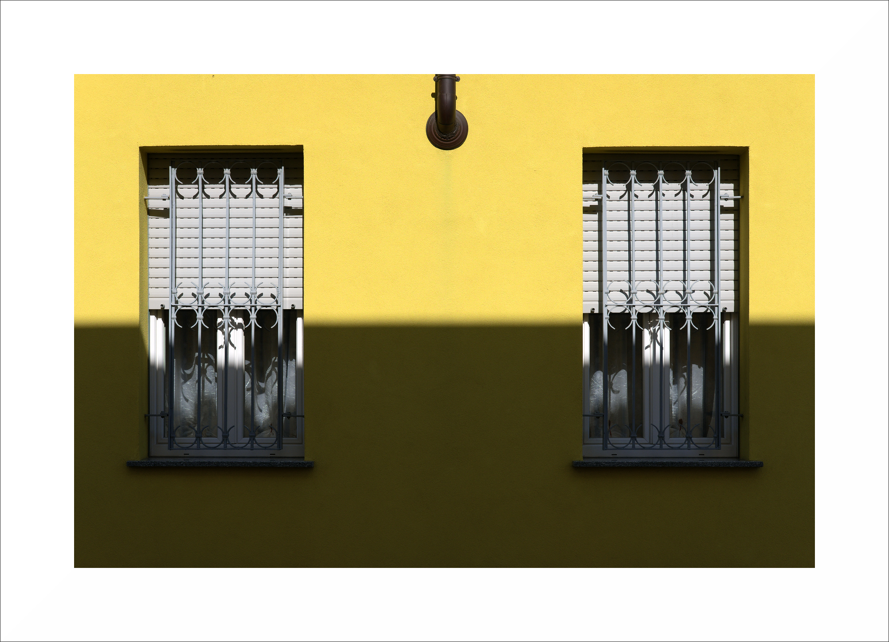Molto bella anche questa, sei riuscito a scovare due finestre identiche anche nella posizione degli avvolgibili e per di più con il sole quasi al loro stesso livello! Beh, che dire? Un occhio fenomenale il tuo, complimenti! Mi piace molto anche l’accostamento cromatico