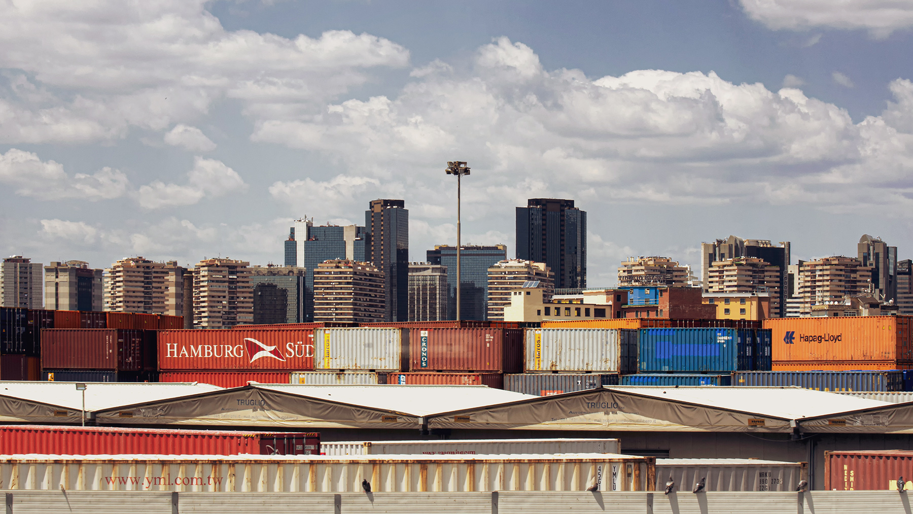due piani, uno orizzontale costituito dai container e uno verticale dei palazzi, bella proposta  |