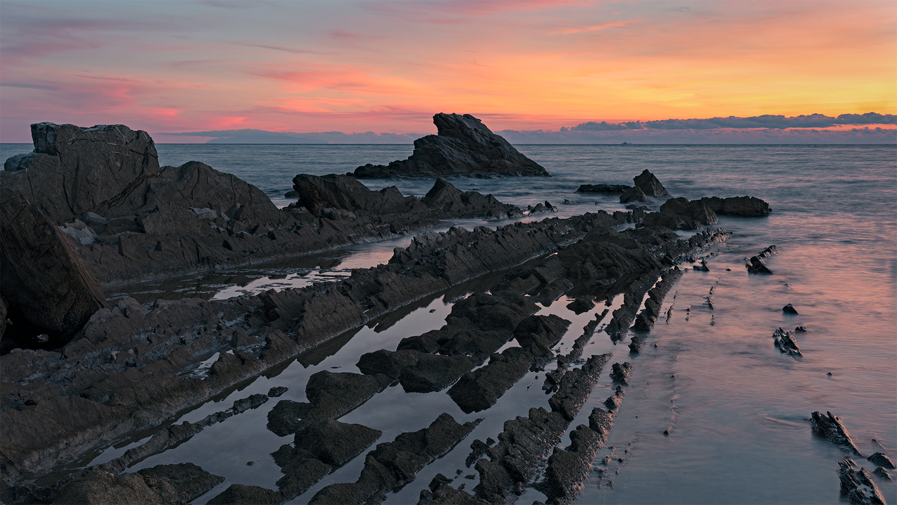 Mi piace sia la composizione che sfrutta la diagonale, sia il contrasto fra le scure forme aguzze ed i toni caldi de bel tramonto