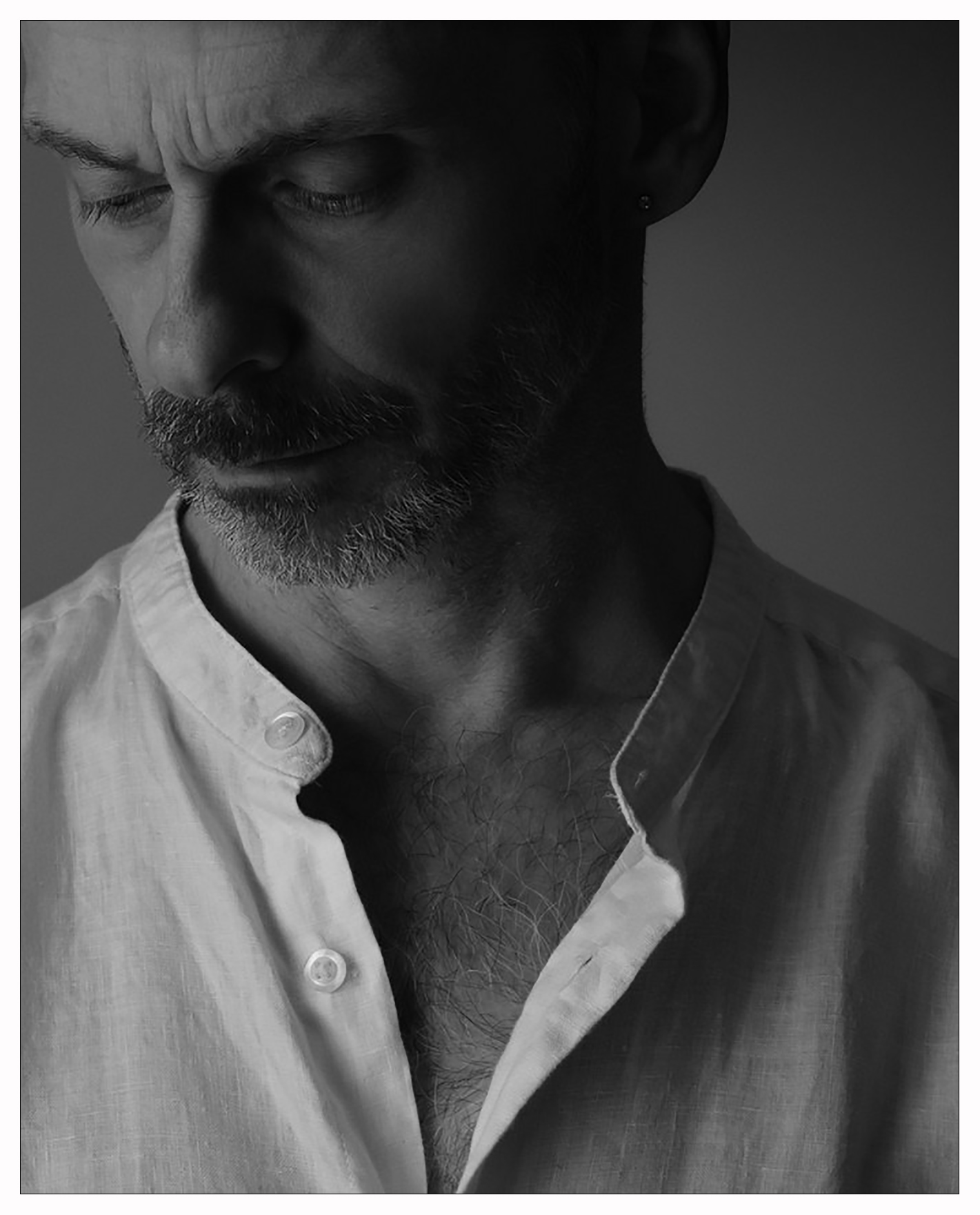 Un incontro ravvicinato con i suoi pensieri...uno sguardo serio, indecifrabile a proteggerli, con il capo chino in una posa elegante.Un taglio deciso,efficace,anche se non mi convince del tutto in alto a sx.. avrei forse lasciato un pizzico di spazio in più. Molto piacevole. Ciao