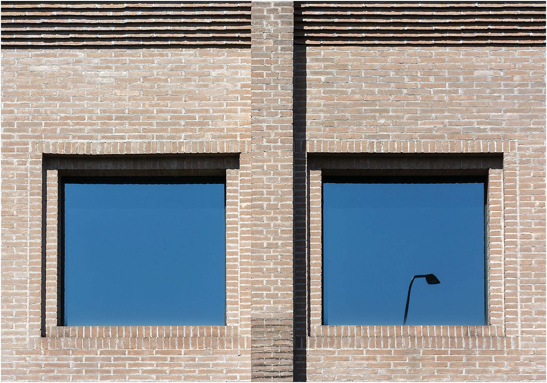 cosa posso aggiungere, perfetta anche per me dalla composizione precisa in cui il rigore è alleggerito dal lampione che si specchia, fino al titolo azzeccato