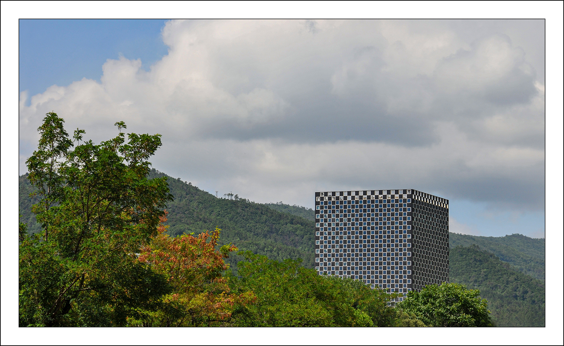 L''Uomo che interpreta senza fronzoli volumi e teorie di quadrati in giochi geometrici. La Natura, intorno, in un abbraccio leggero di fronde e velluto di boschi. Un dialogo perfetto.