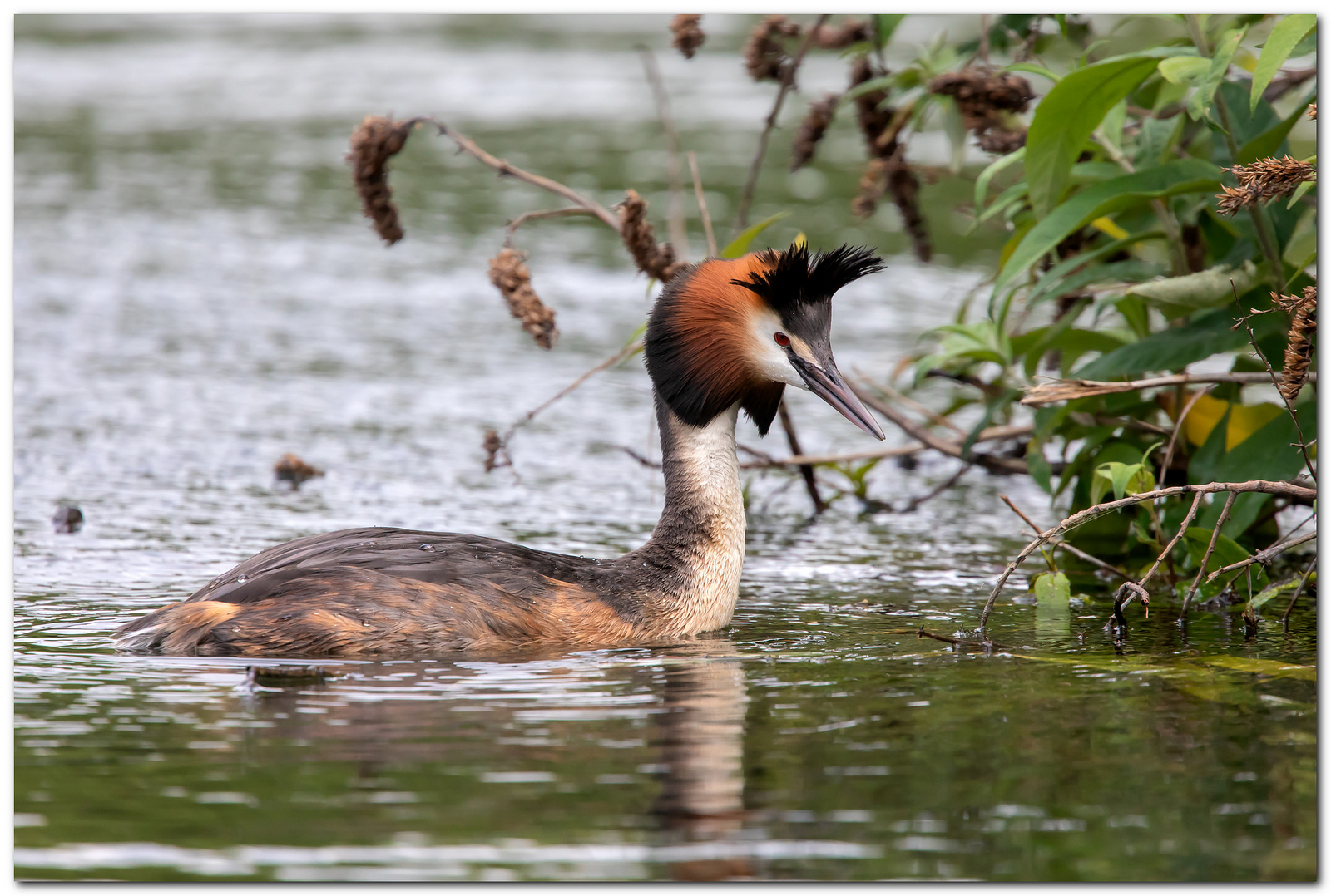 | Bella! Uno svassi ripreso nel suo ambiente naturale, entropicamente ordinato. Tecnicamente notevole |