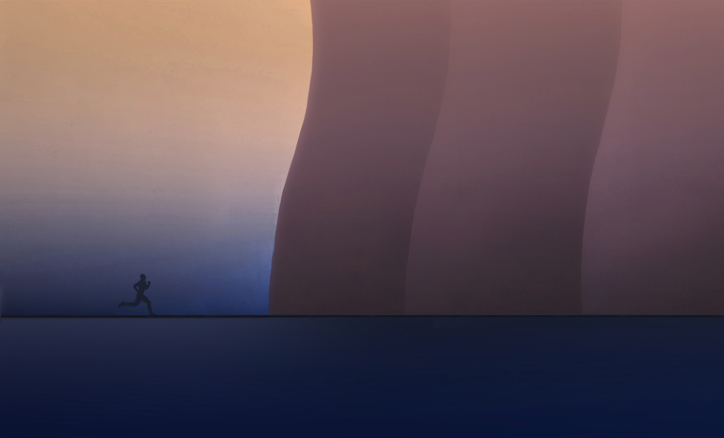 Visionaria e suggestiva… Un’astrazione degli elementi della natura, in cui l’uomo corre, ma non sappiamo dove sia diretto… Bellissimi i colori e la distribuzione delle forme, complimenti.
