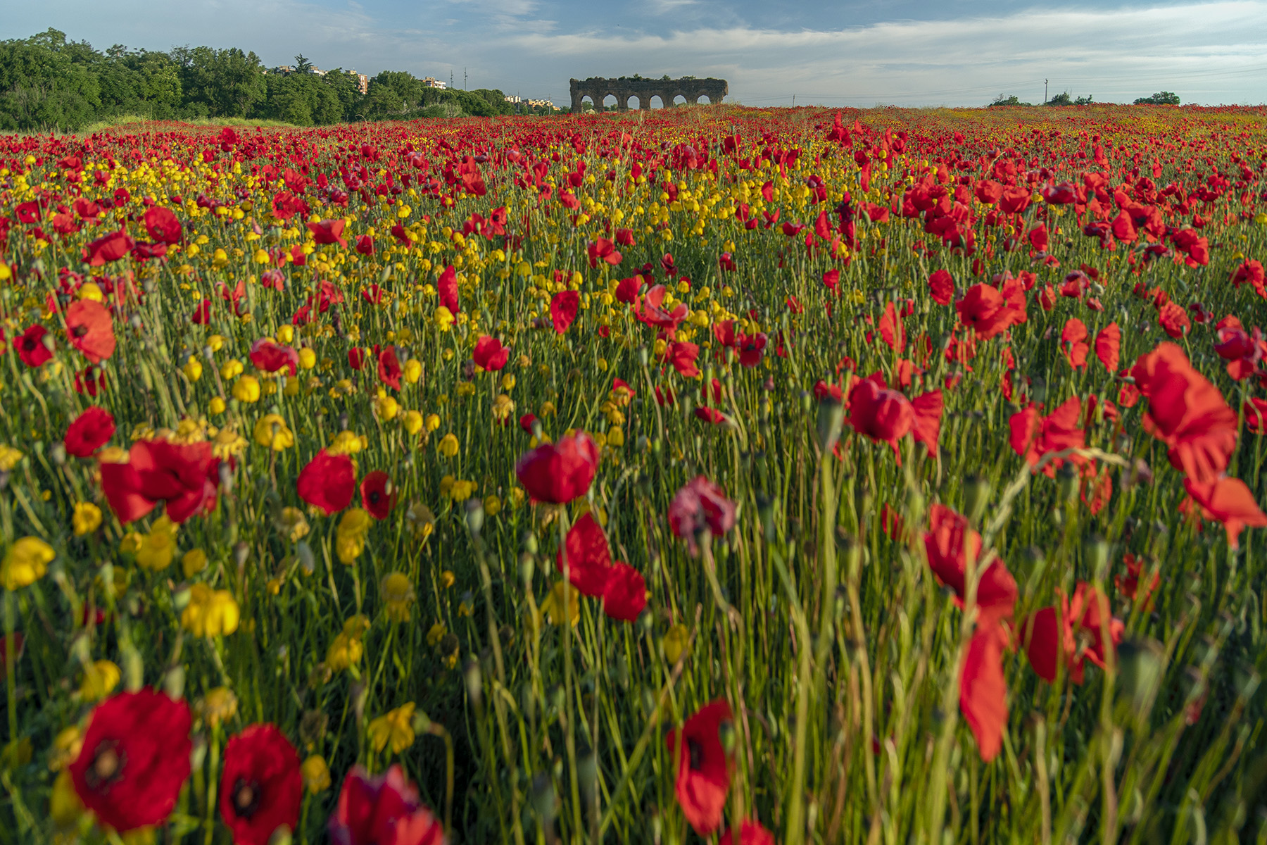 Cesare e Mauro grazie per i primi riscontri, ho pensato al "tutto a fuoco", ma pensavo che il punto di interesse, nonostante il 99% del fotogramma fosse occupato dai fiori, fossero i resti dell'acquedotto e allora ho optato per questo utilizzo dei parametri per avere la parte sotto sfocata... Smile