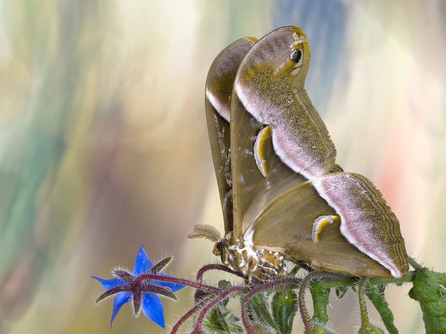 questo tuo scatto, almeno per me, si rivela quando lo apri: la preview mi dà l'idea di rocce illuminate da sin in uno scenario forestale ai tropici.. al click si assiste allo splendido spettacolo dell'ala, delle antenne, del corpo.. e si resta incantati dalla naturalezza non pompata dei colori, dallo sfondo evanescente e mosso, da quel fantastico fiorellino blu, dal magnifico contrappasso zampette-gambi .. formidabile