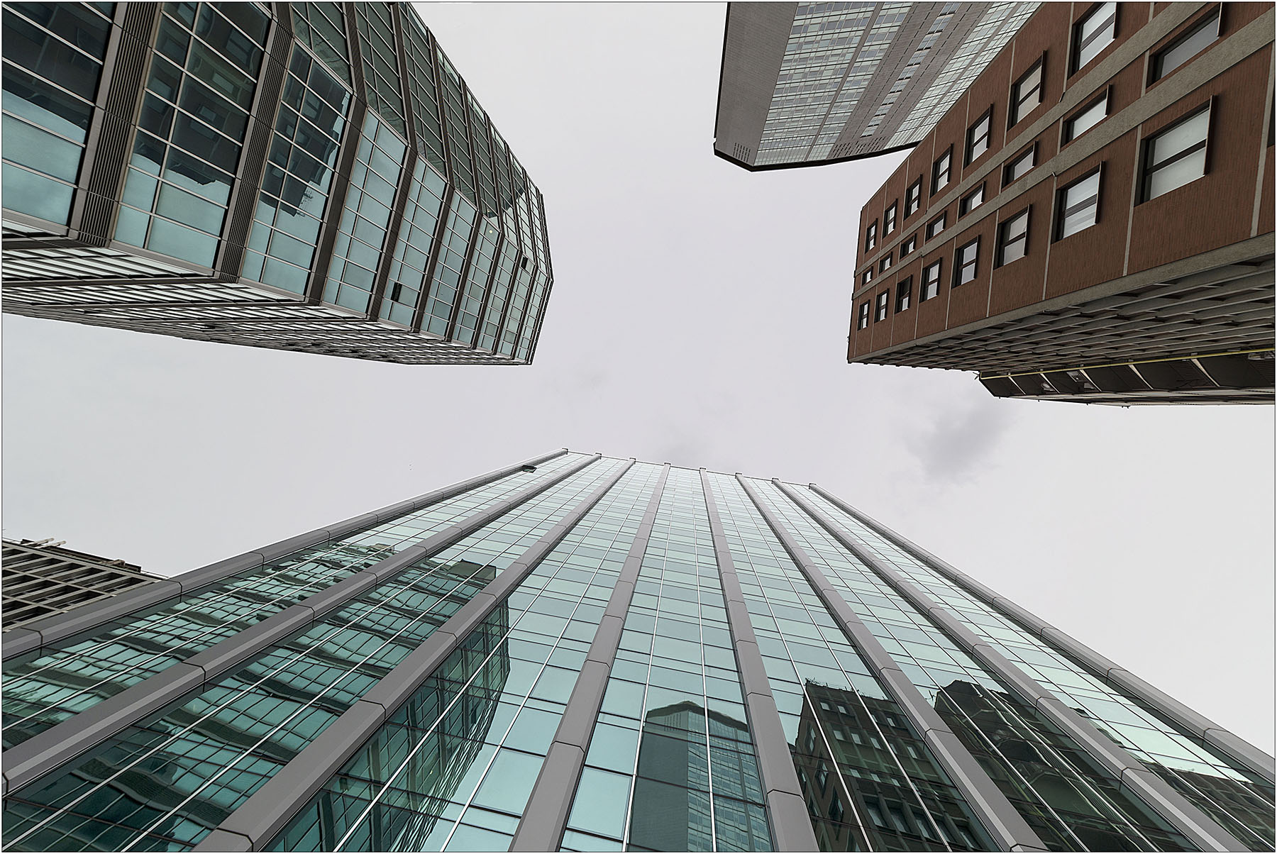 Una diagonale non troppo spinta nè vertiginosa ma con una sapiente rispetto delle linee che cadono esattamente negli angoli ci proponi questa interessante vista architettonica moderna che apprezzo molto per la resa cromatcia dei colori sulle superfici in vetro. Bella.  |