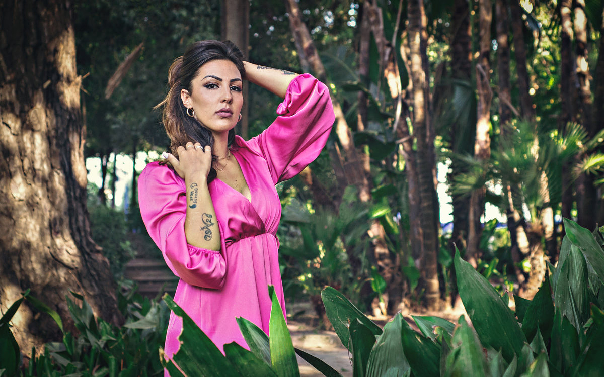 Un bel ritratto con la giusta sfocatura per percepire la gradevole ambientazione. Molto bello il contrasto tra la modella e l'ambiente e la posa. E naturalmente bella la modella