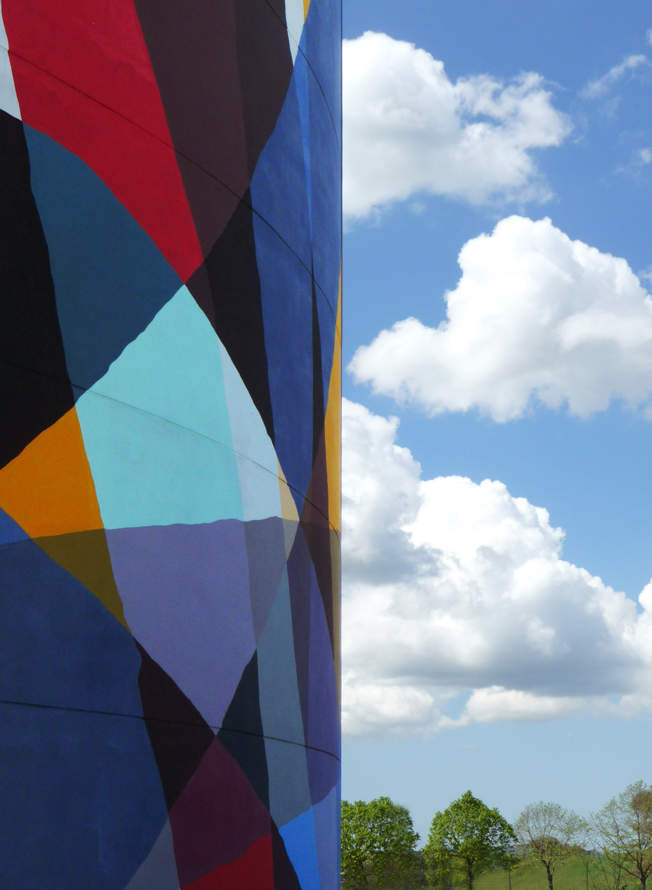 Mette allegria! A mio gusto gli alberi si potrebbero eliminare, bello anche il cielo con le nubi bianche.