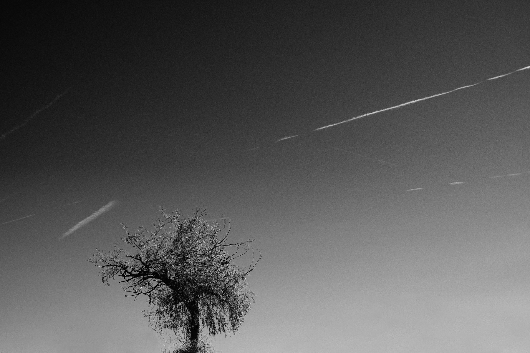 Un alberello che guarda col naso all'insu' , un po' mesto perche' vorrebbe volare anche lui come quegli aerei che vede sfrecciare tutti i giorni. Ma non puo',maledette radici !