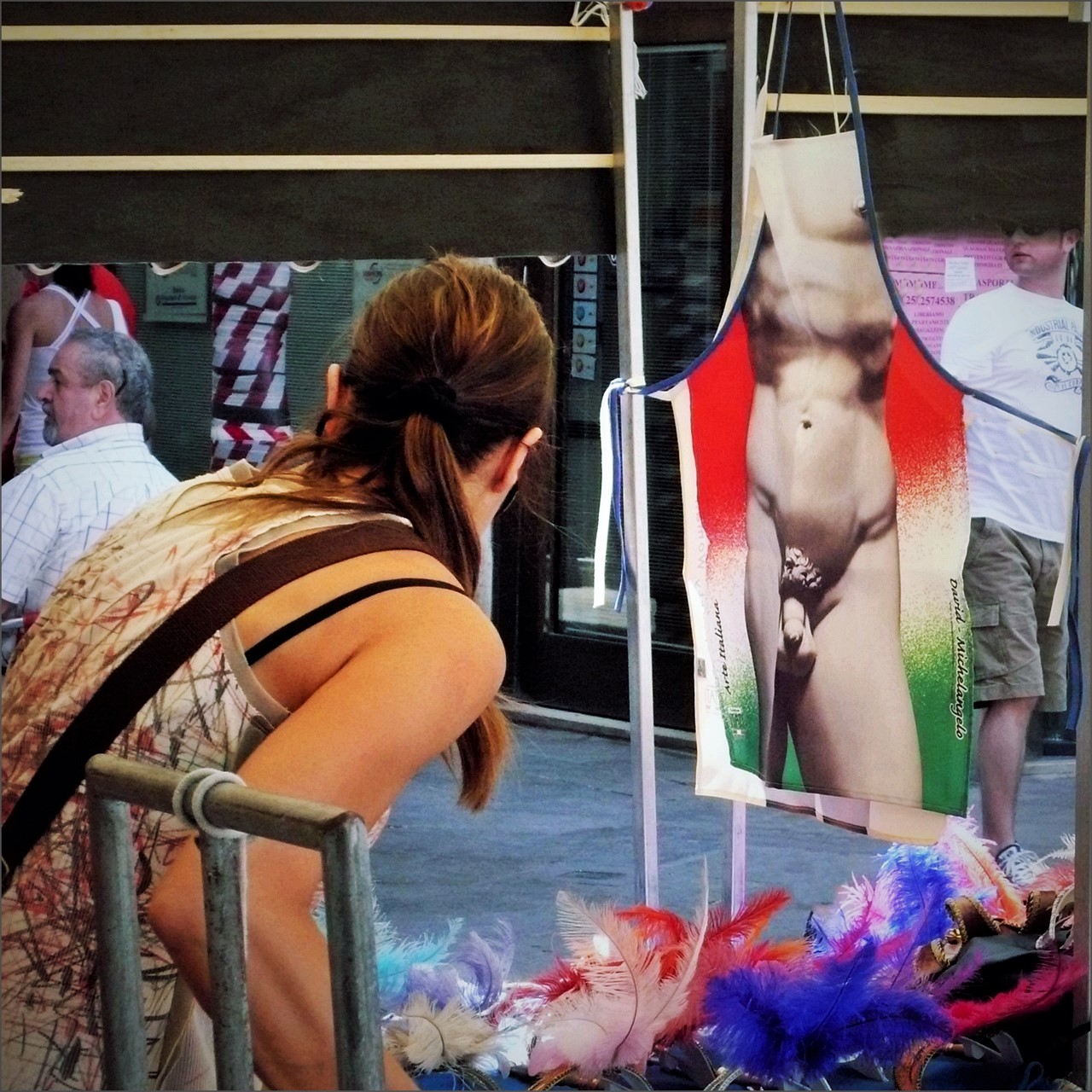 Simpatica e ben colta, la forma del grembiule appeso rende davvero l'idea delle braccia che si aprono a mostrare la "sorpresa" alla malcapitata. Bel colpo.