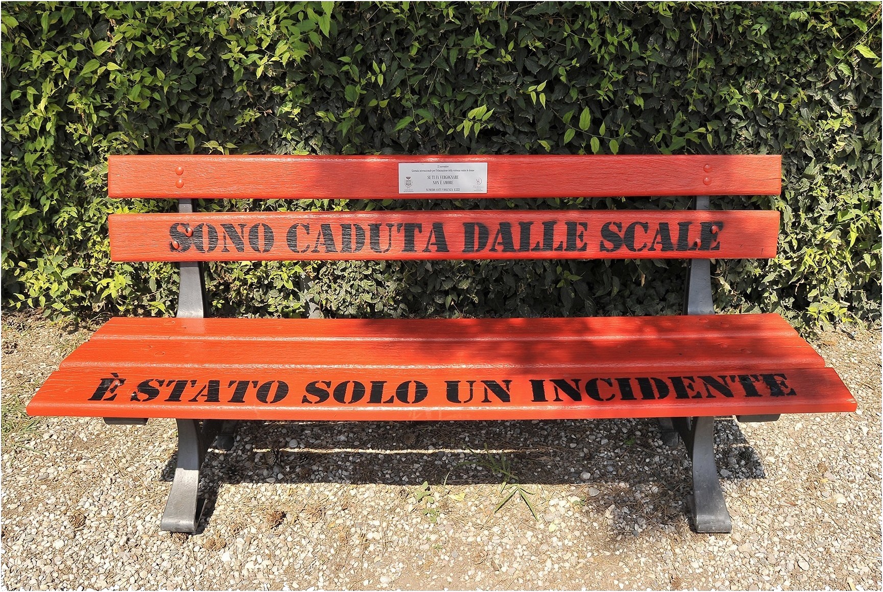 | Purtroppo una brutta e dura realtà che spesso l'intelligenza e il buon senso delle donne ma anche magari la paura maschera con una deposizione falsa e scusante, di comodo. Foto efficace che meglio si spiega dopo aver visto il contenuto scritto della targhetta. Buona. Ciao, Tiziano