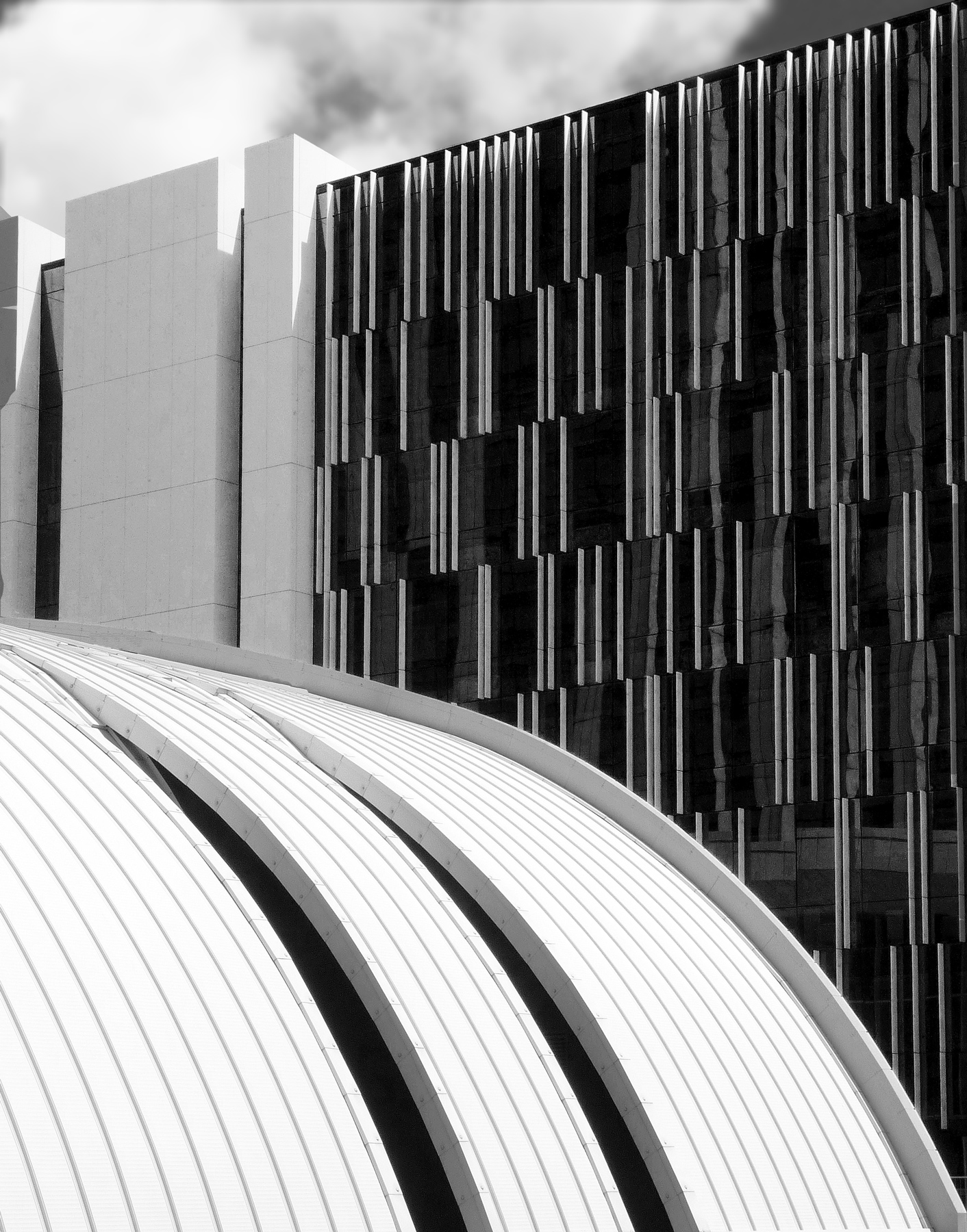 Composizione che valorizza le forme curve e rette che si incastrano creando un bel gioco visivo.