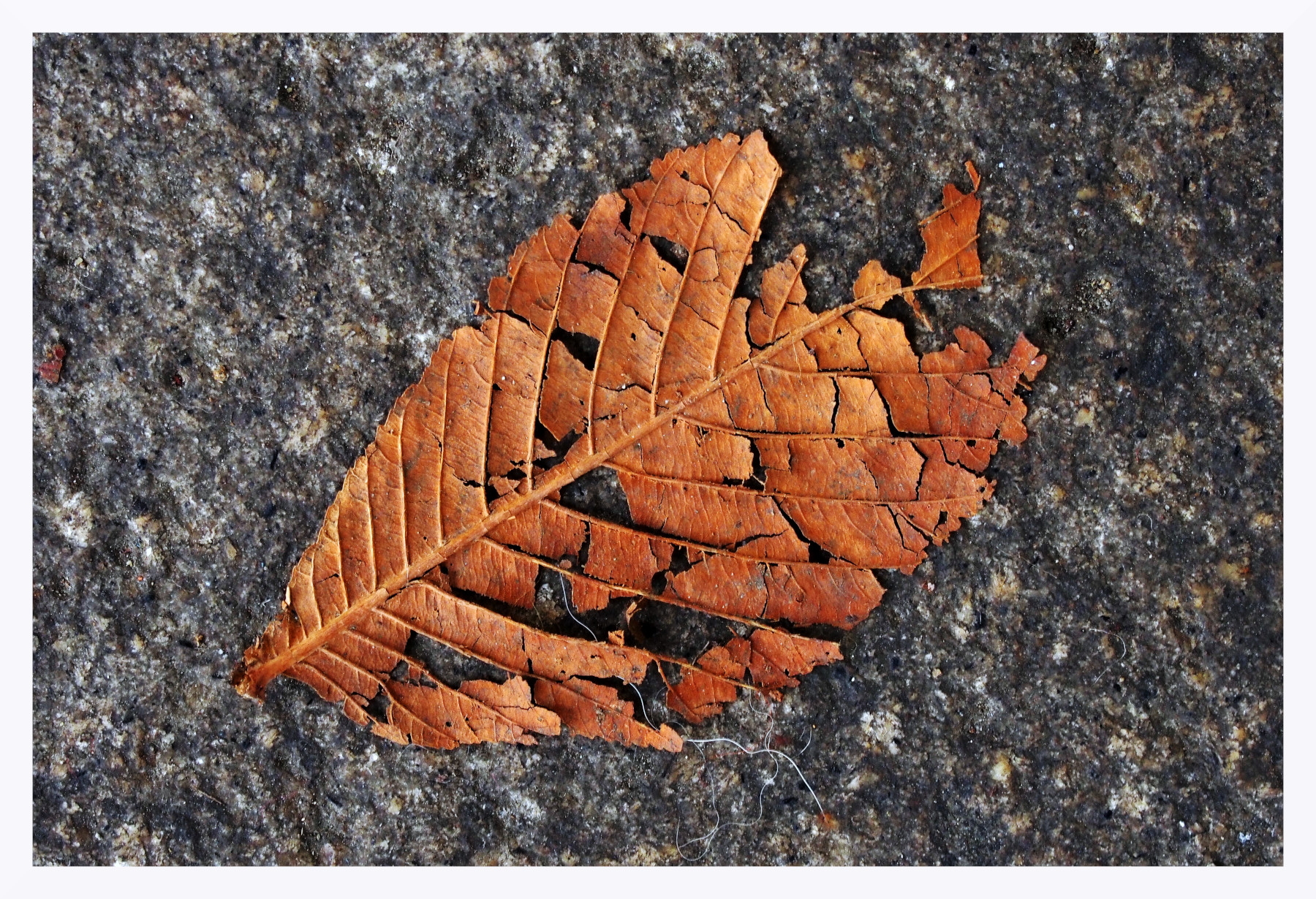 Bella croccante ,hai restituito benissimo la fragilita' di una foglia secca.Ottimo anche lo sfondo che stacca deciso  con il suo colore e  ruvidita' , piacevolissima foto e lavorazione accurata ,bravo. Mela-preferisco .