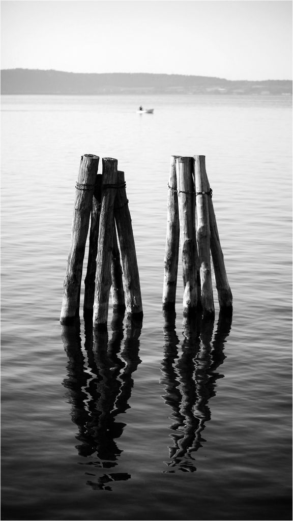 Buona la composizione, bello il riflesso, ottimo il bn, giusto il formato verticale, ma, concordo con Max, troppo lunga… avrei tagliato la parte superiore eliminando del tutto barchetta, costa e cielo, in modo da ottenere un’immagine più pulita. Ovviamente a mio gusto personale Smile