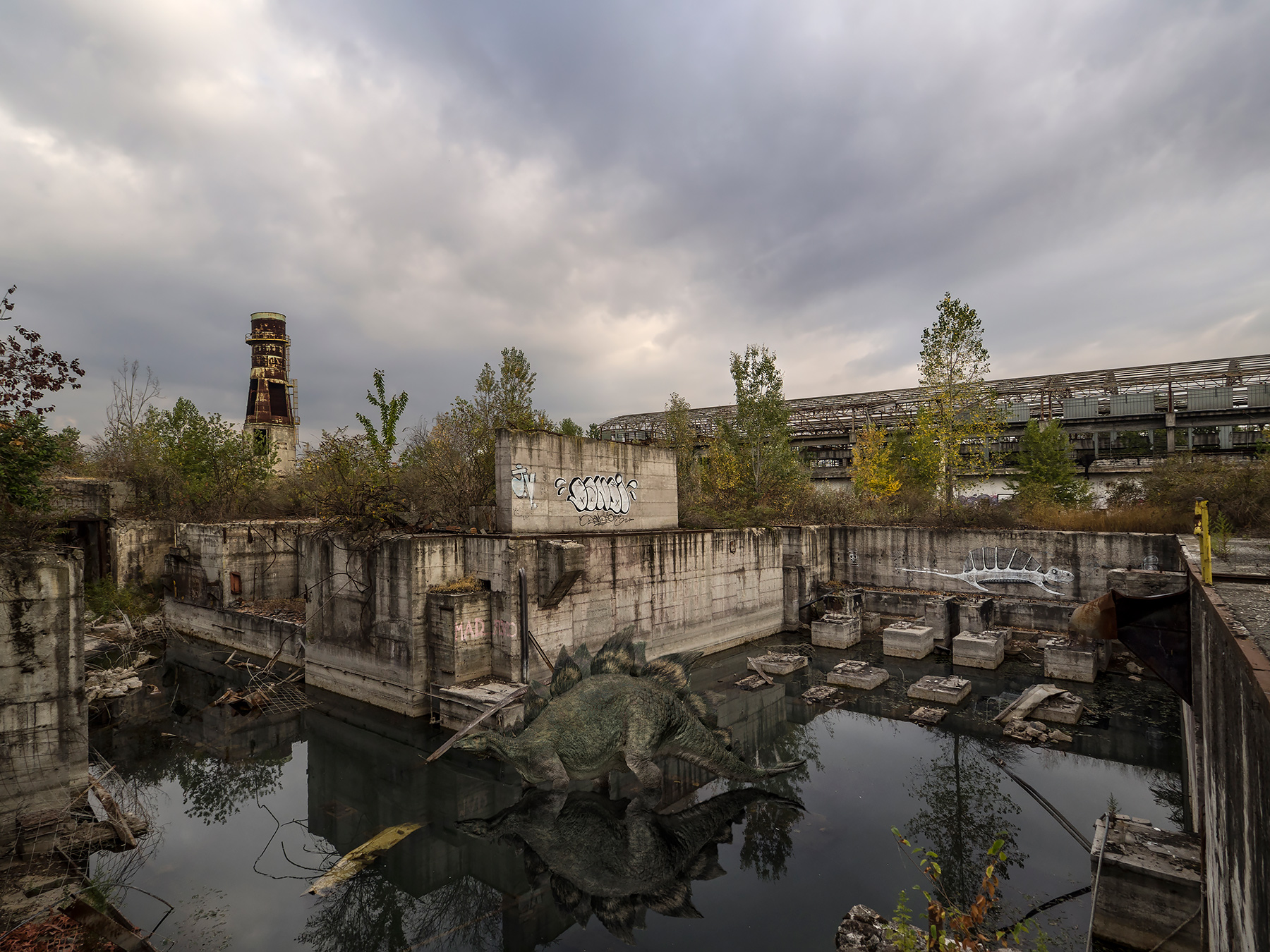Scena ampia, surreale, archeoindustriale in cui calare giustamente un cososauro perfettamente riflesso in una realizzazione tecnica perfetta (almeno, io non noto difetti).