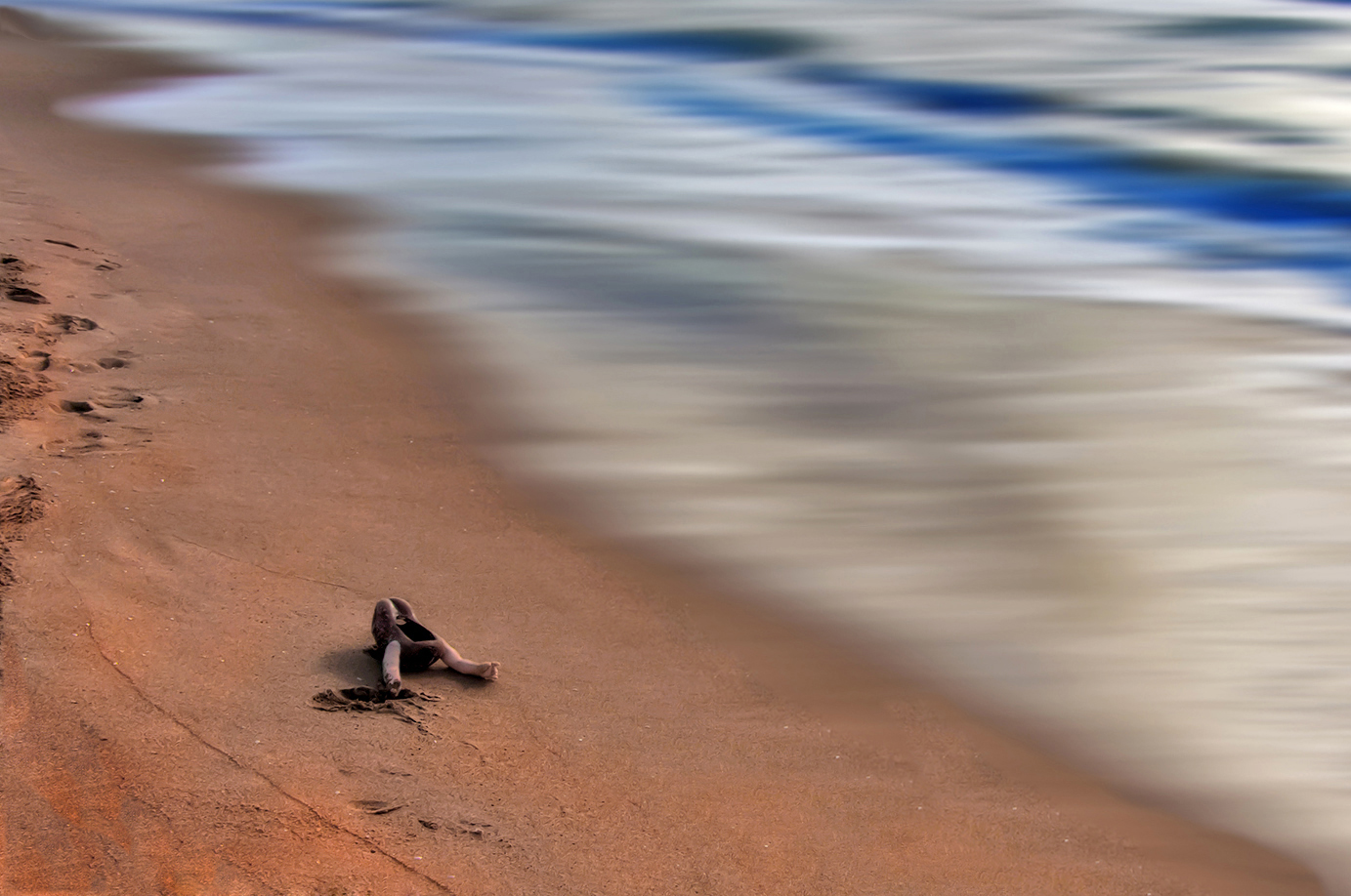 | Impressiona un po' questo scatto con il residuo informe di quel ch e resta del corpo di un probabile bambolotto. Bello l'effetto del movimento delle acque sulla battigia dato il lungo tempo di esposizione. Bella anche questa. Ciao, Tiziano |