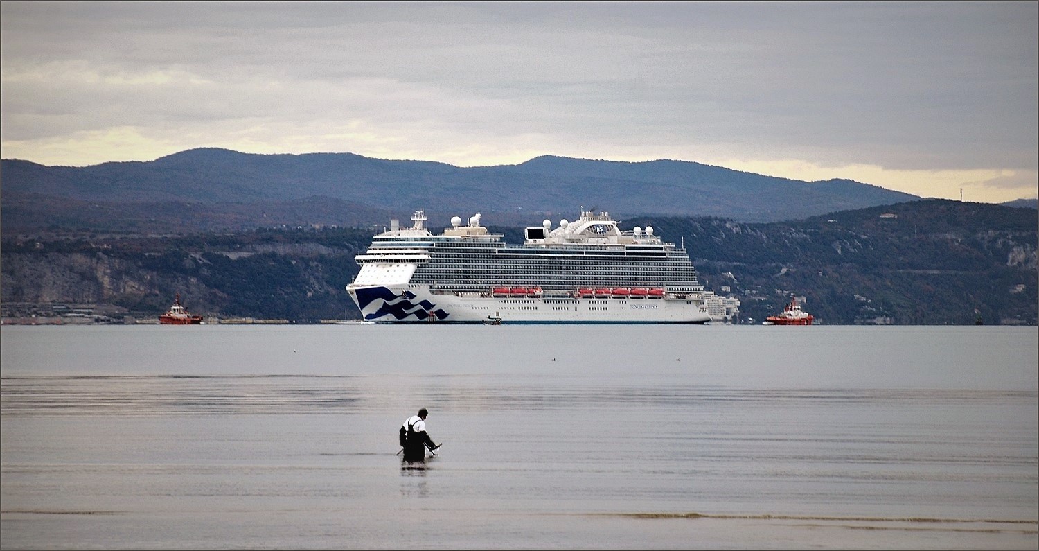 Mi colpisce sempre vedere quant’è bassa l’acqua in questa zona, sicuramente lo è meno dall’altra parte! Immagine molto gradevole, bella la contrapposizione tra l’uomo e la nave, piacevoli i colori delicati
