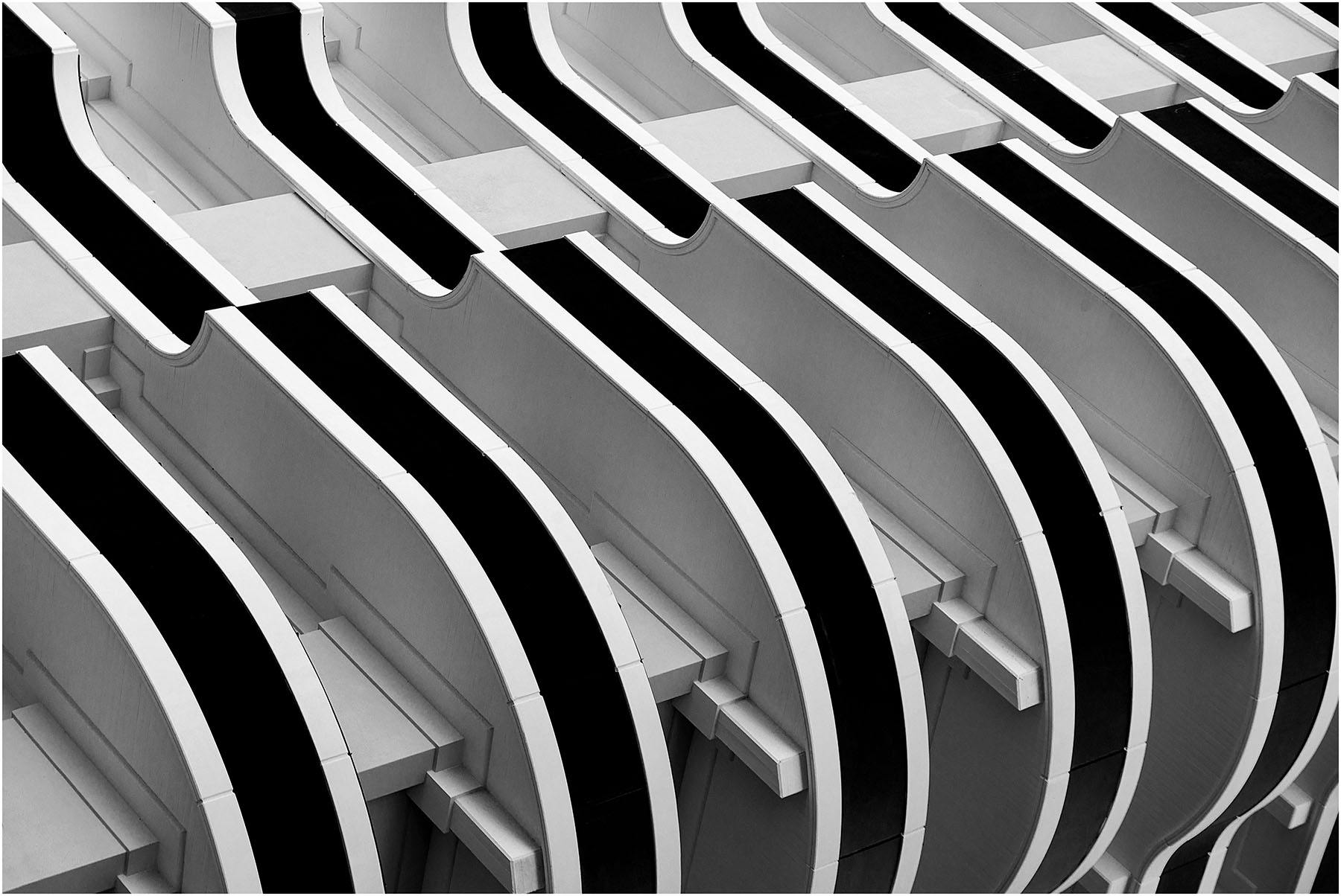 Titolo molto adeguato all'andamento di queste linee che catturano lo sguardo con l'alternarsi dei bianchi e dei neri e le curve che quasi trasmettono un senso di movimento.Ottimi bn e composizione. Ciao,Sergio. _________________ Sergio Demitri https://www.flickr.com/photos/124946035@N02/ |