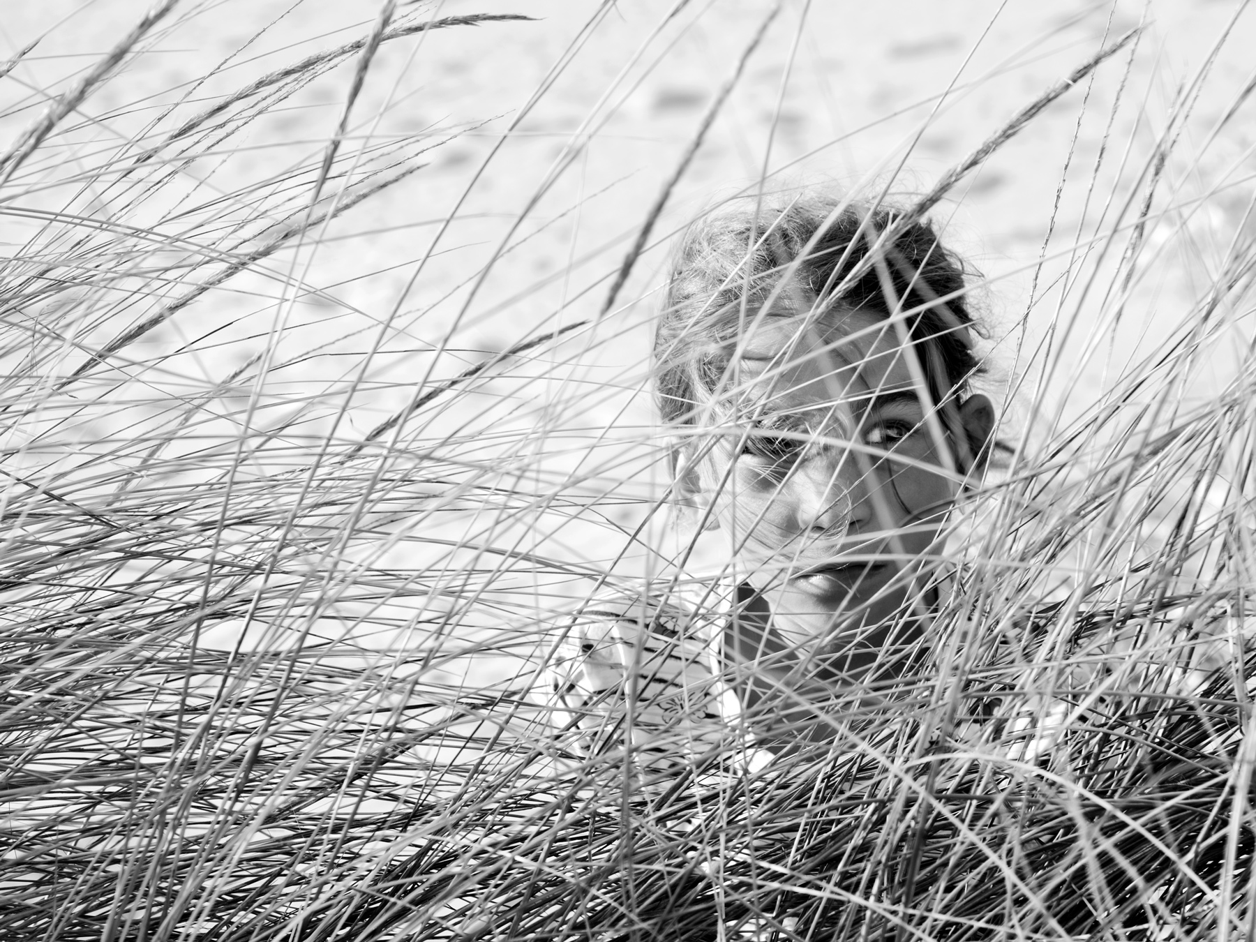 La trama sottile dei fili d'erba nascondono leggermente il soggetto ed al contempo amplificano la curiosità di andare a cercare ogni minimo particolare di questo bel viso celato.