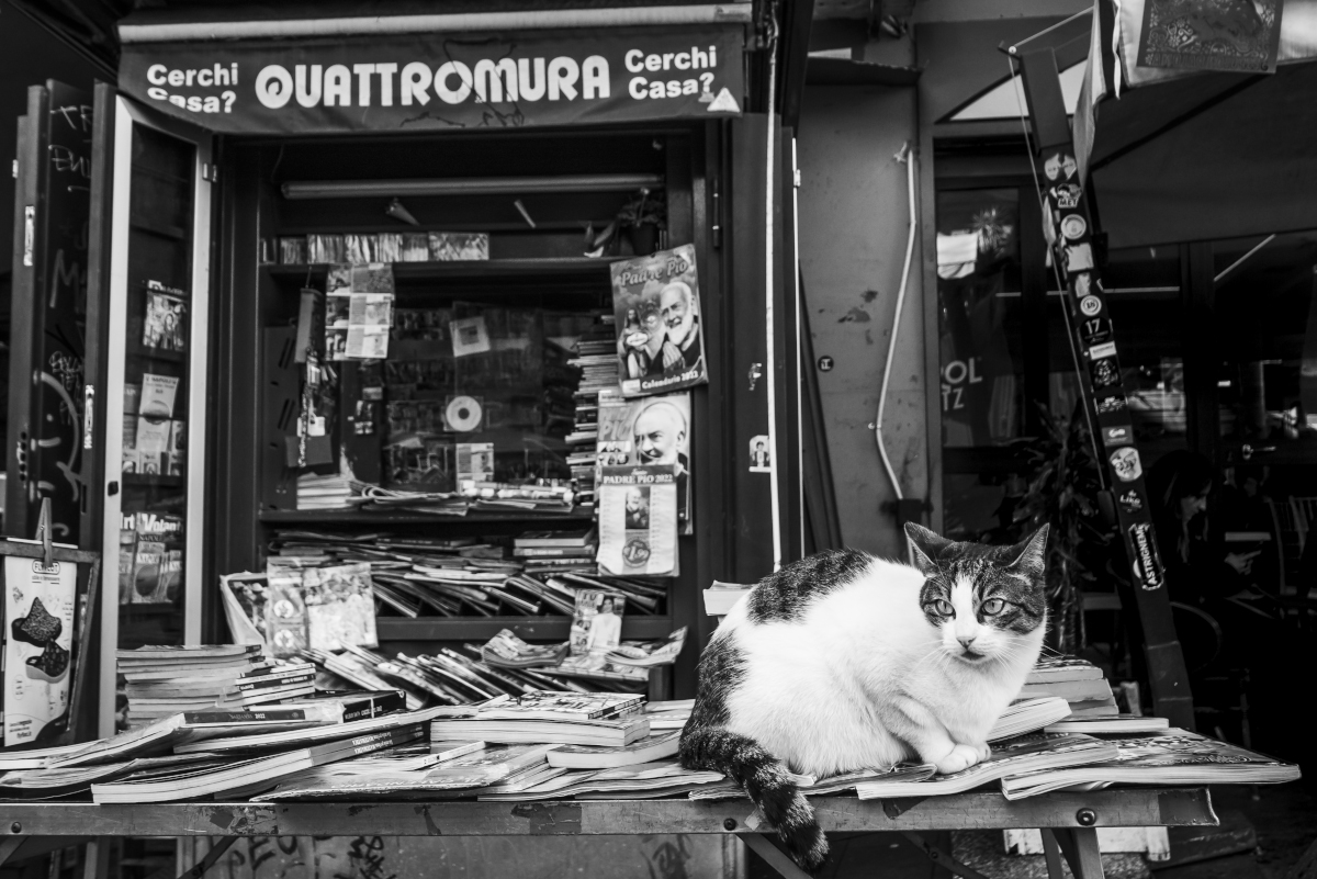 Non so se sia una street, magari mi sfugge qualche nesso tra gatto e ambiente, ma il bn è notevole e il soggetto felino ottimamente ripreso. Gradevole il leggero fuori fuoco dello sfondo.