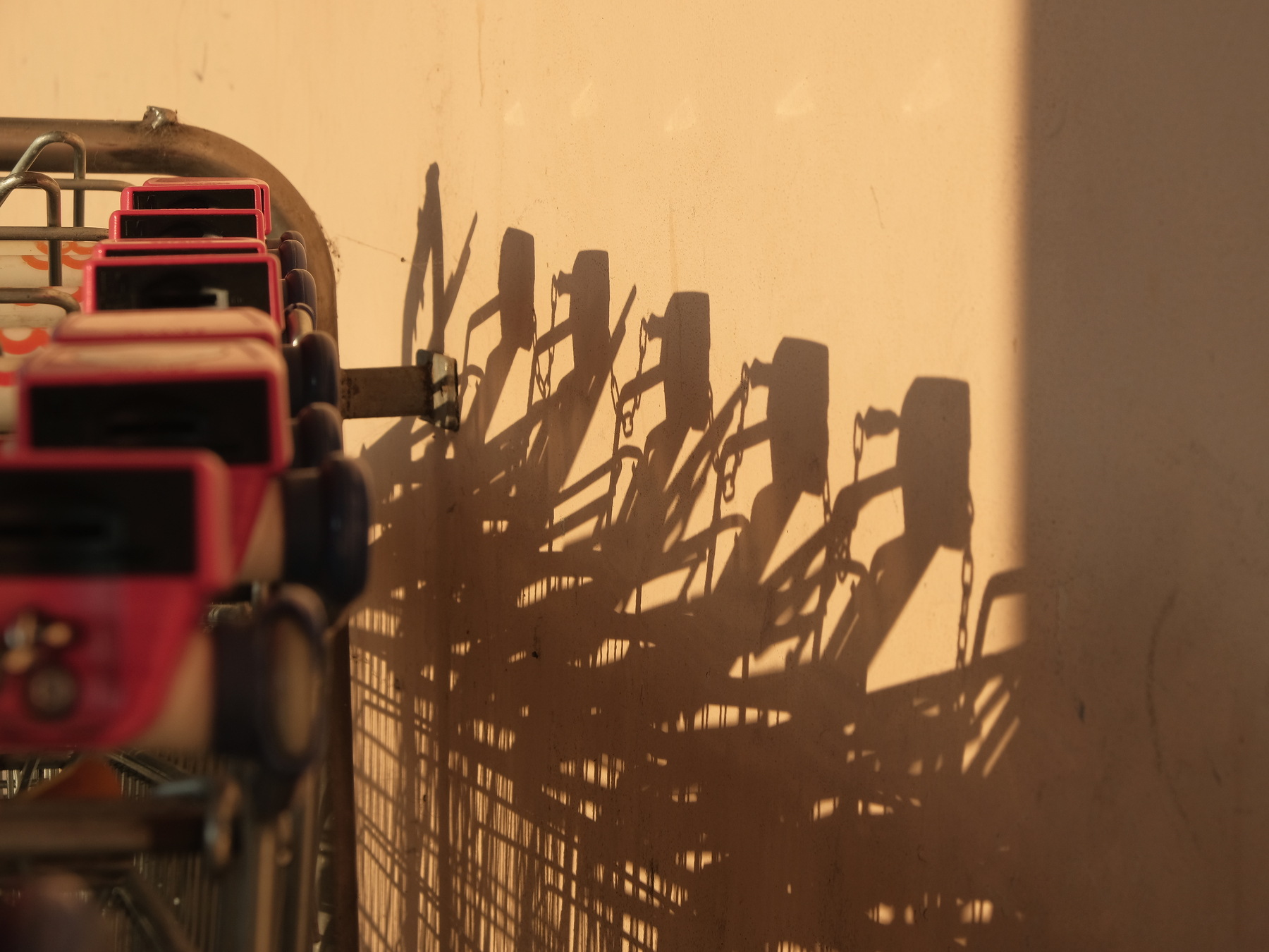 Non mi ero mai accorta che i carrelli dei supermercati potessero avere queste ombre articolate e attraenti Very Happy Buona la distribuzione delle forme e dei colori in un’immagine molto gradevole Smile
