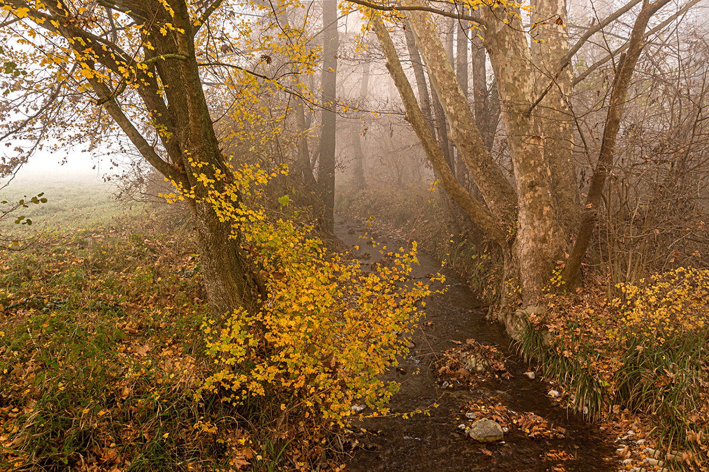L'autunno sta per finire ma il fascino dei suoi colori rimane intatto e questa immagine con le sfumature del giallo, con il ruscello e la nebbia ce ne danno un conferma _________________ Giuseppe |