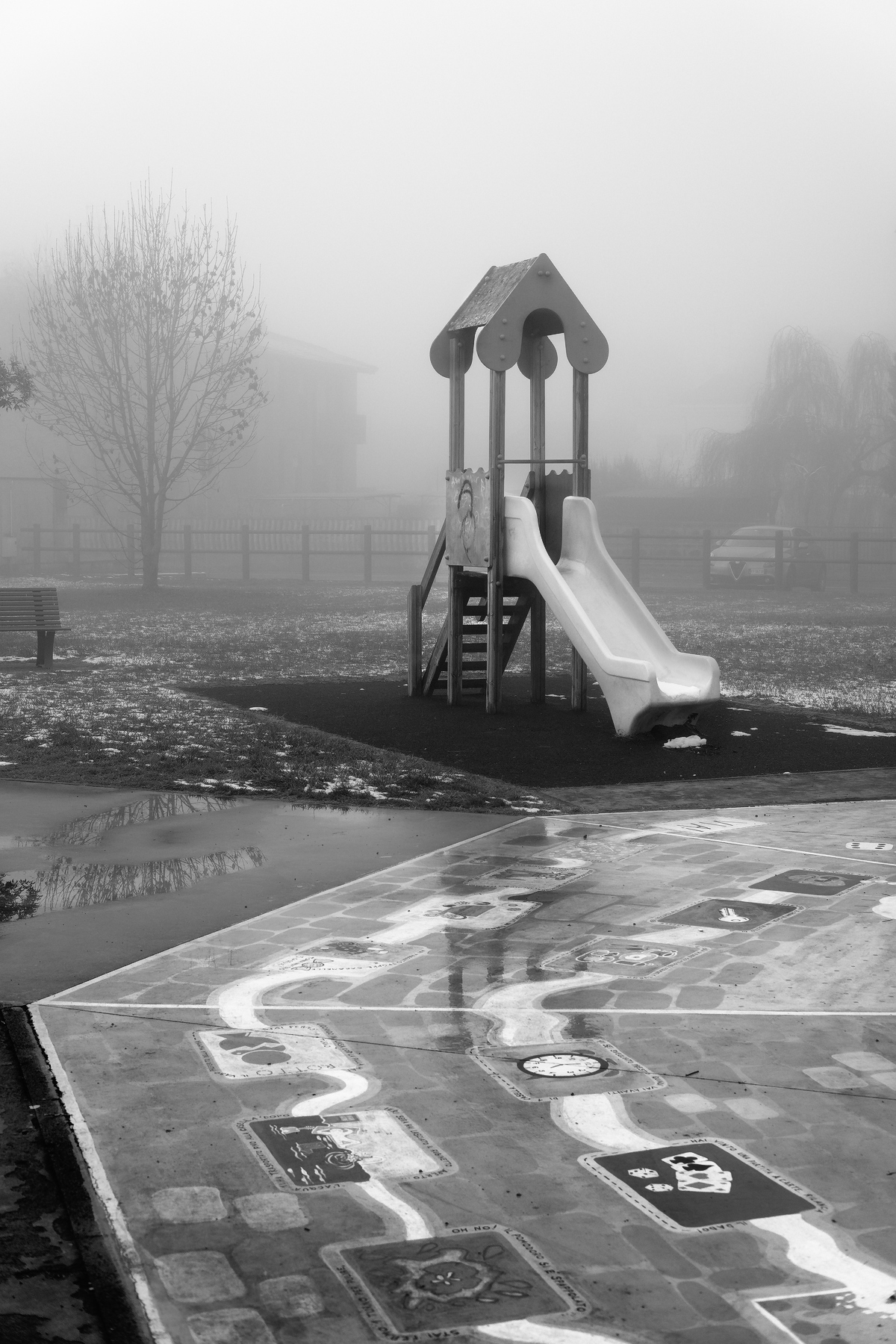 Inquadratura e pdr interessanti. La nebbia, gli accenni di neve, i giochi privi di bambini rendono lo scenario un po melanconico e tu hai saputo cogliere questo aspetto