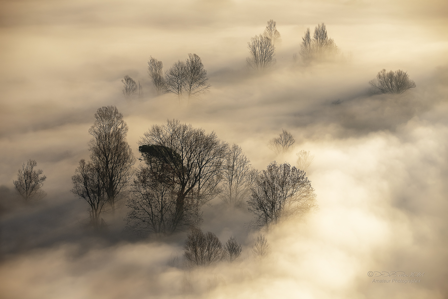 Belle queste punte di alberi che compaiono dal nulla di un lago di nebbie. Un'immagine che appare come un sogno. Bravo. Ciao, Tiziano